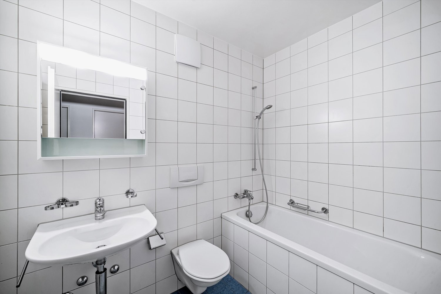 - Badezimmer mit pflegeleichtem Plattenboden