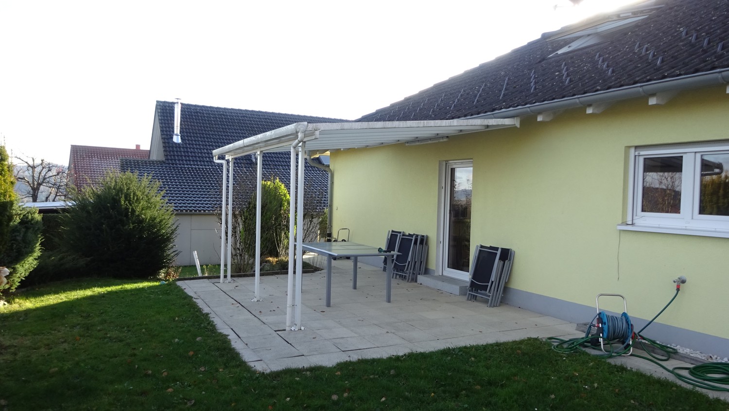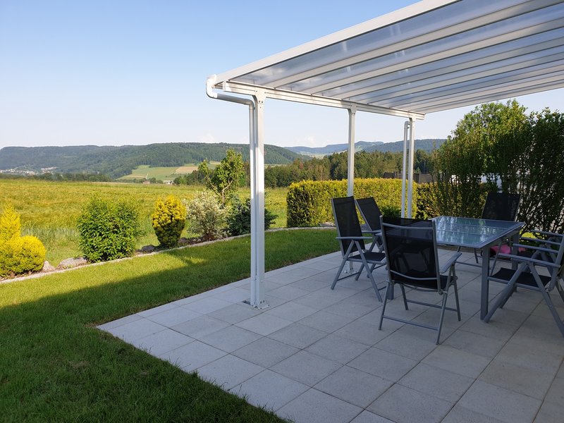 Das Haus steht an einer sehr ruhigen Lage auf deutscher Seite in 79725 Laufenburg, Vogelsang 10. Es hat 2 Sitzplätze und der Verbindungsweg wurde 80 breit gemacht, damit Sie mit einem Kindrwagen oder Rollator von einem Sitzplatz zum nächsten kommen. Sonnenliebhaber finden immer einen Platz an der Sonne am Morgen auf dem Ostsüd-Sitzplatz im Sommer bis 15 Uhr anschliessend auf dem Westsitzplatz, natürlich umgekehrt wer Schatten möchte. Beide Sitzplätze sind gedeckt.
