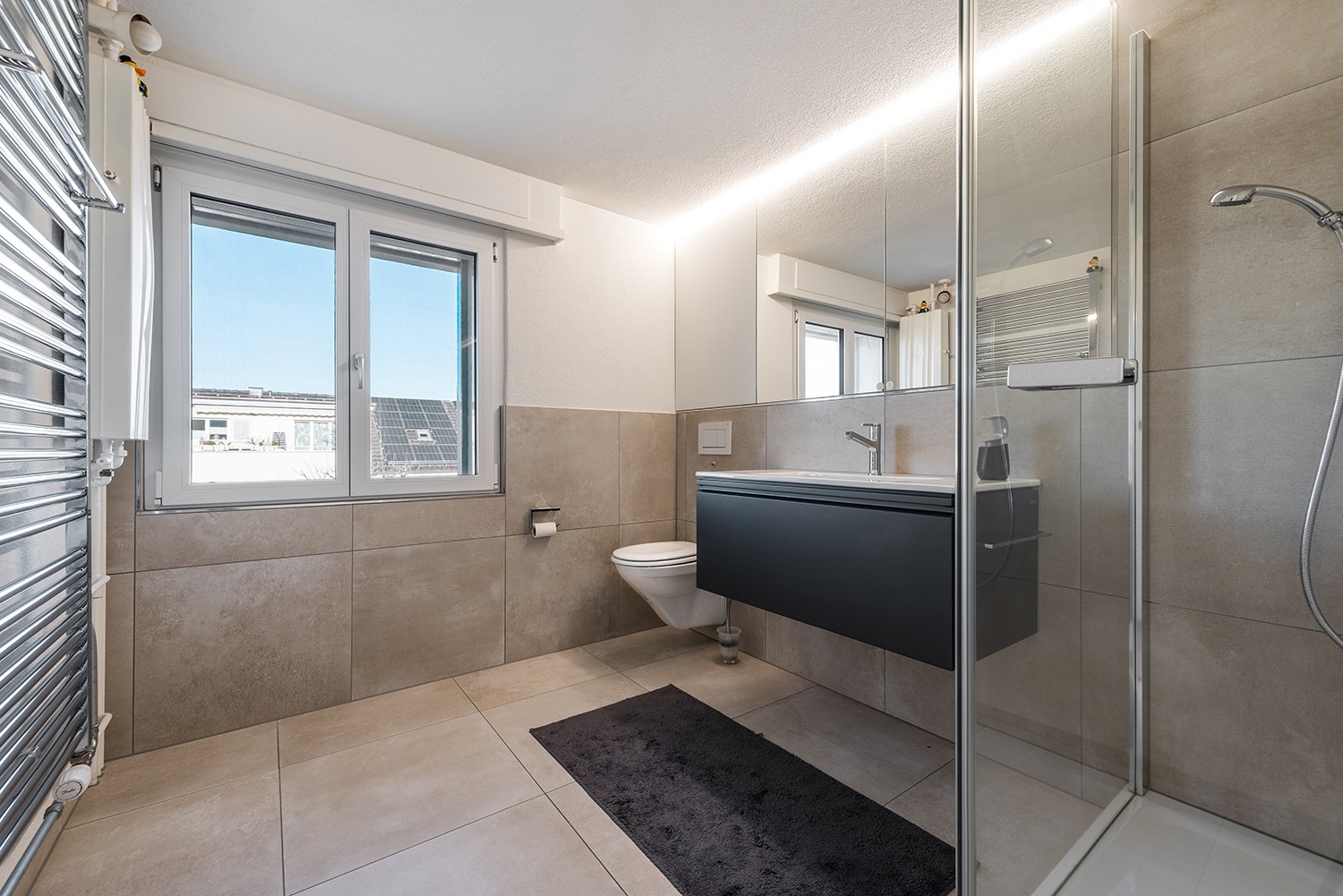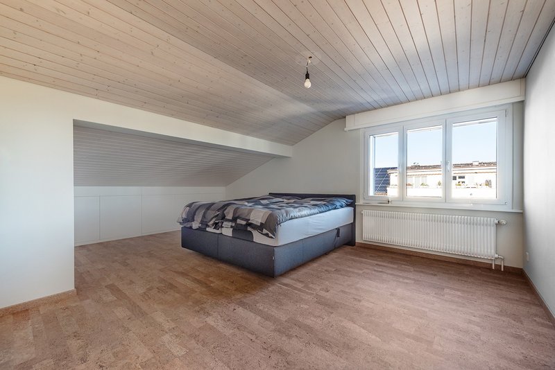 Im Obergeschoss stehen vier geräumige Zimmer zur Verfügung, die sich ideal als Schlafzimmer, Kinderzimmer oder Homeoffice eignen. Ein weiteres Badezimmer mit Dusche und WC sorgt für zusätzlichen Komfort.