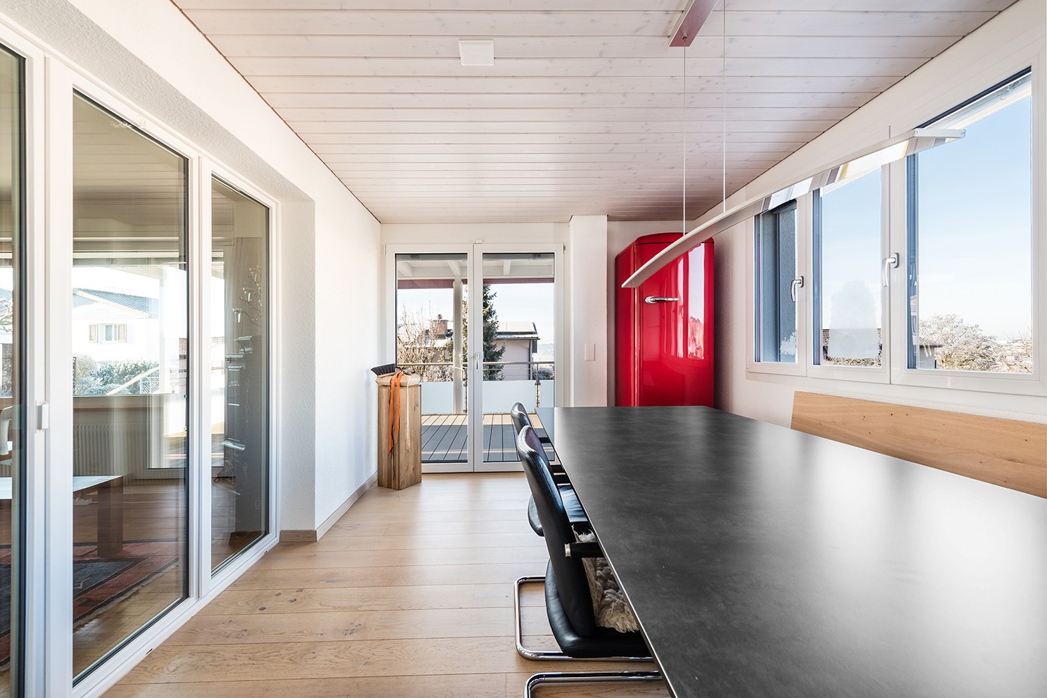 Ein besonderes Highlight bildet die im Jahr 2024 komplett erneuerte Küche mit hochwertigen Geräten von V-Zug. Der angrenzende, beheizte Küchenanbau mit Wintergartencharakter schafft einen hellen Essbereich und erweitert den Wohnraum auf angenehme Weise.