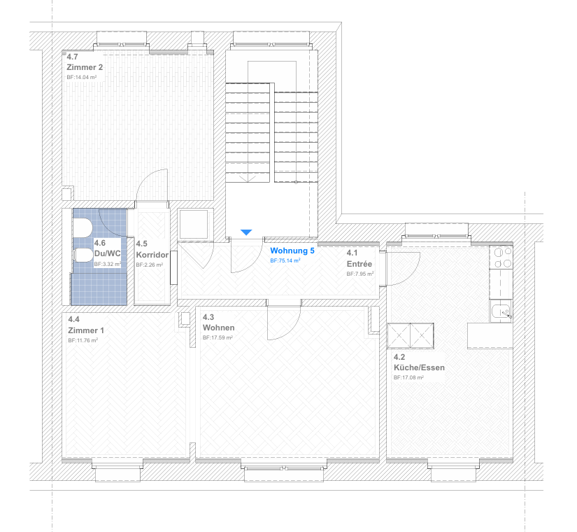 Die Wohnung umfasst 75m2 und zeichnet sich wie folgt aus: