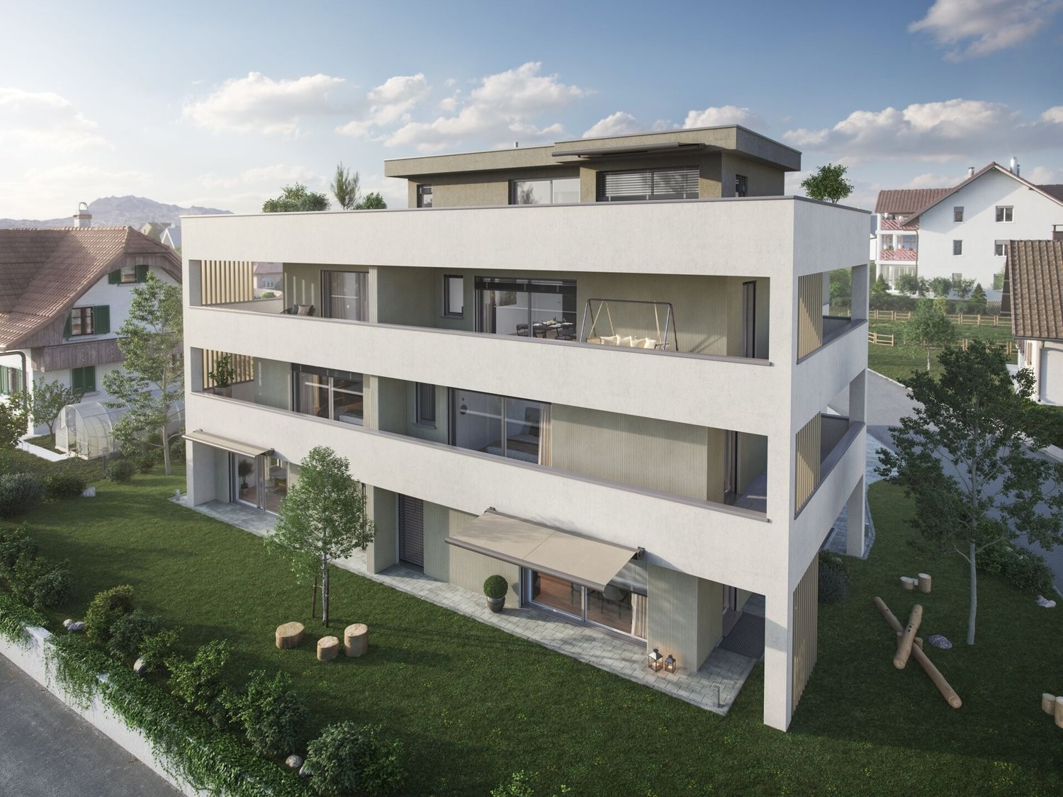Das imposante 4-Familienhaus ist an zentraler und sonniger Lage, direkt neben einer Bushaltestelle gelegen. In unmittelbarer Nähe befinden sich der Volg, eine Metzgerei, ein Coiffeur, zwei Restaurants, Cafés und der Detailhandel. Die Schule befindet sich ebenfalls in der Nähe. ONE ist nicht nur mit dem öffentlichen Verkehr ideal erschlossen, der nahe gelegenen Autobahnanschluss sorgt für eine hervorragende Anschlussmöglichkeiten in Richtung Zürich, Bern, Luzern, Zug und Basel. Der nahe Wald oder die Bünzaue laden zu einem Spaziergang rund um das Dorf ein. In den Sommermonaten bietet sich das Schwimmbad für einen Sprung ins kühle Nass oder zum Sonne tanken an.
