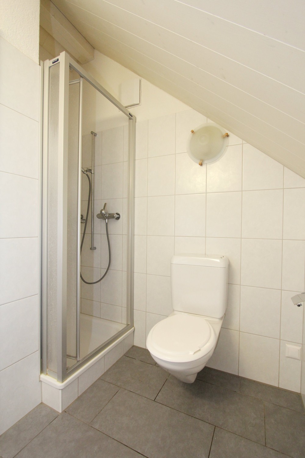 Über einen Treppenaufgang erreicht man das 2. Dachgeschoss, welches sich in ein Schlafzimmer mit praktischen Einbauschränken und eine Nasszelle (Dusche/WC) aufteilt.