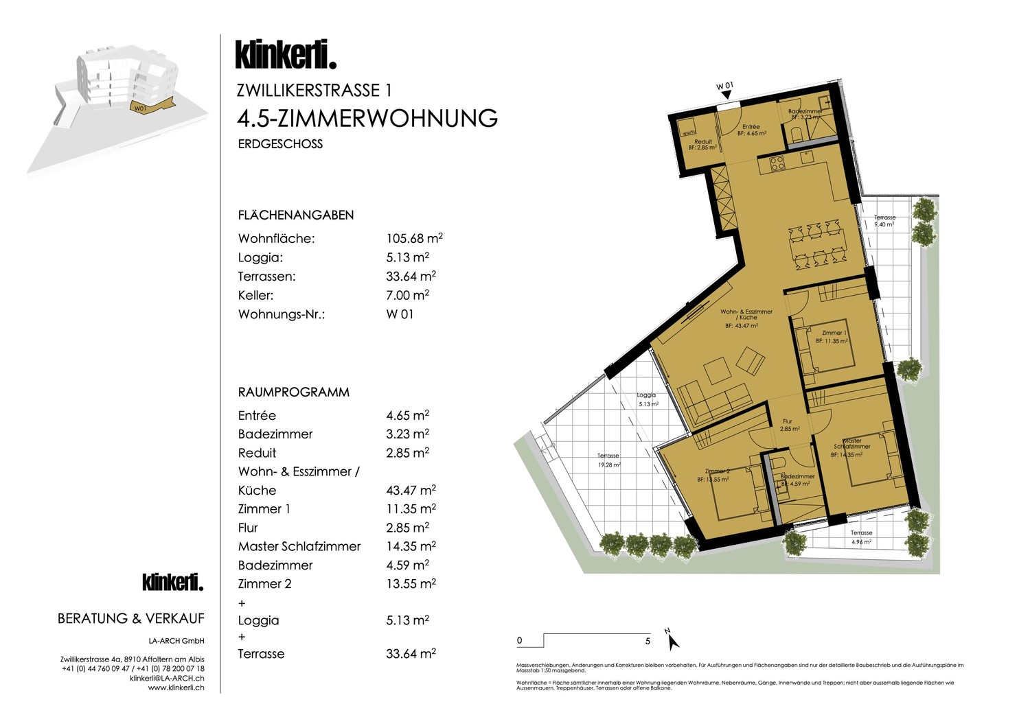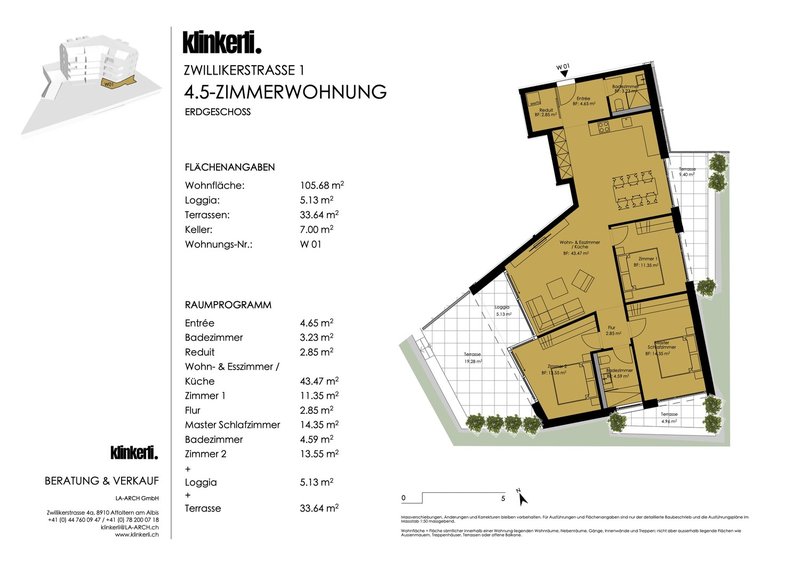 Das neue Wohnprojekt klinkerli bietet Ihnen eine hervorragende, zentrale Lage mitten in Affoltern am Albis, mit bester Anbindung an Einkaufsmöglichkeiten, die S-Bahn sowie sämtliche Schulen – alles befindet sich in unmittelbarer Nähe. Die Architektur des Hauses schafft eine ruhige, private Atmosphäre, so dass Sie trotz der zentralen Lage inmitten von Affoltern eine geschützte Wohnumgebung geniessen können. Die 12 Wohneinheiten in verschiedenen Grössen überzeugen mit durchdachter Architektur und erstklassigen Annehmlichkeiten; von Smart Home System über eine Photovoltaikanlage bis hin zur modernen Raumbelüftung – hier bleiben keine Wünsche offen.