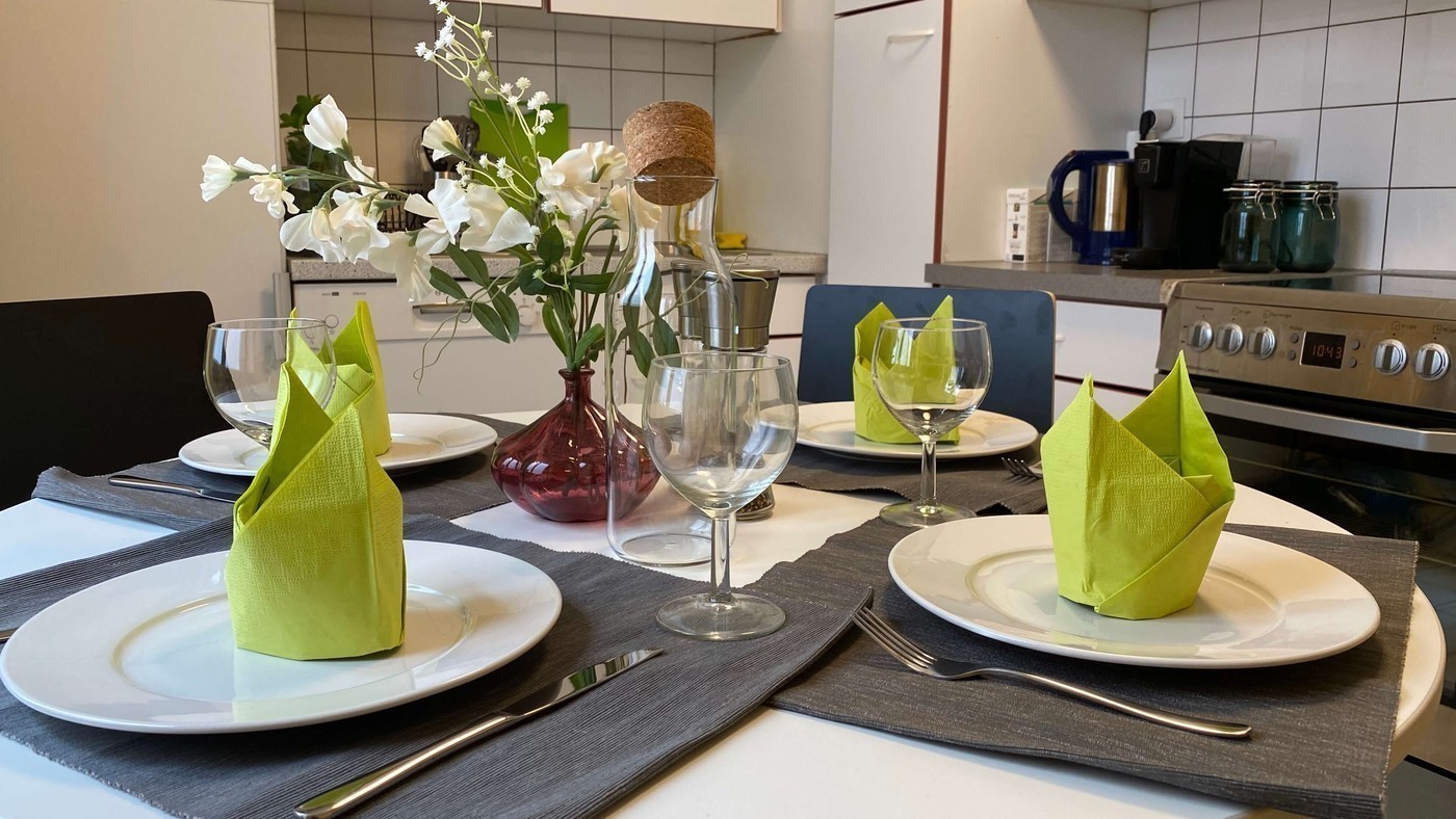 La cuisine est également entièrement équipée avec tous les ustensiles nécessaires. Nos meubles, neufs et choisis avec soin, contribuent à l'ambiance accueillante de l'appartement.
