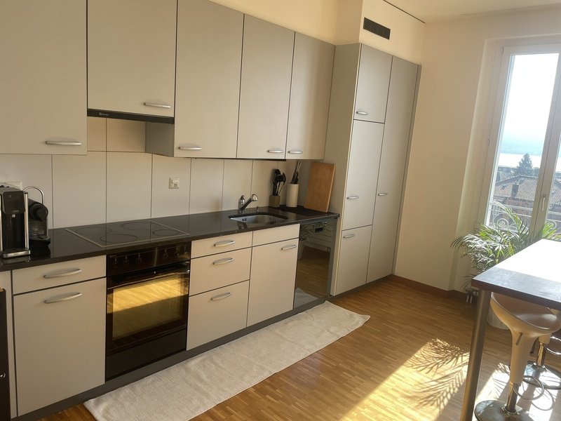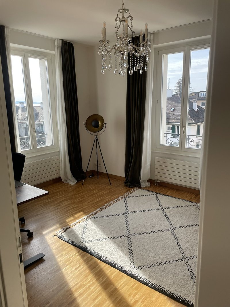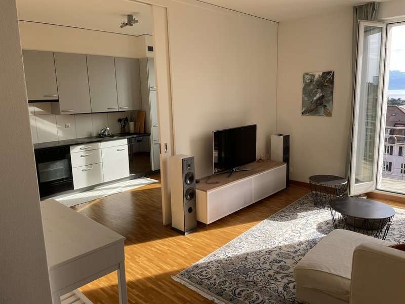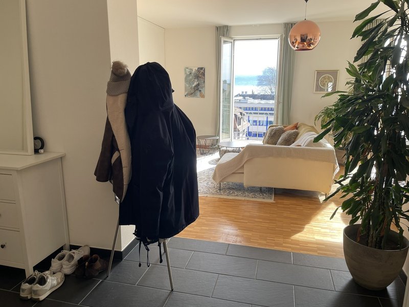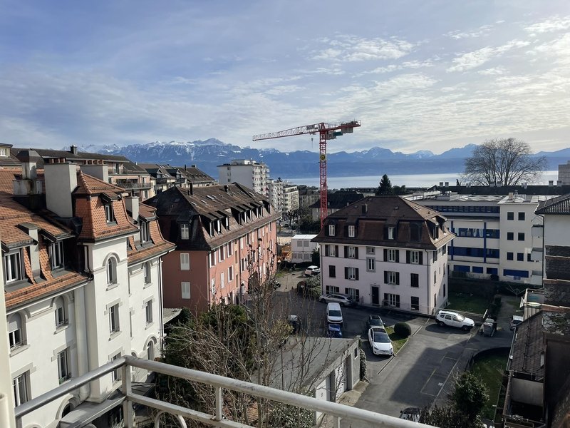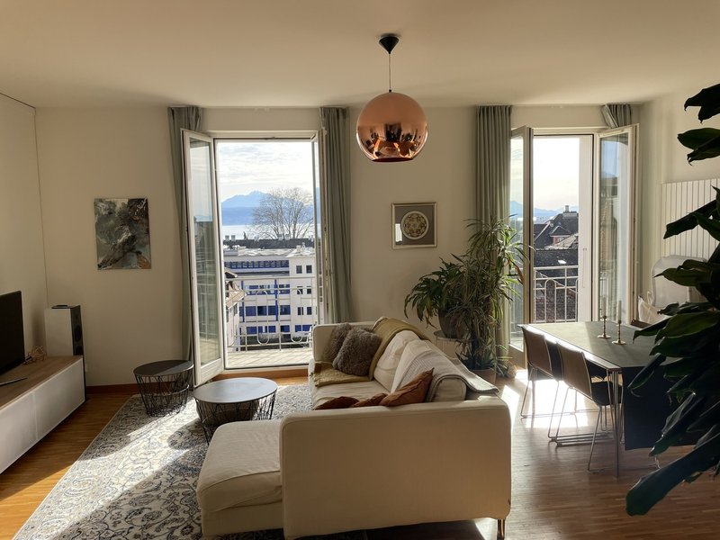 Sous-location – Appartement 3.5 pièces (90 m²) – Dernier étage, balcon sud avec vue sur le lac – Sous-Gare, Lausanne – Parking couvert inclus – Partiellement meublé