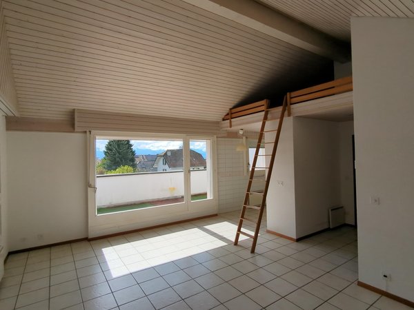 Cet appartement plein de charme, situé dans les combles, est parfait pour ceux qui souhaite habiter en région Lausannoise. Vous profitez d’un grand séjour lumineux avec balcon, d’une mezzanine pratique et d’une chambre confortable, le tout dans un cadre agréable.