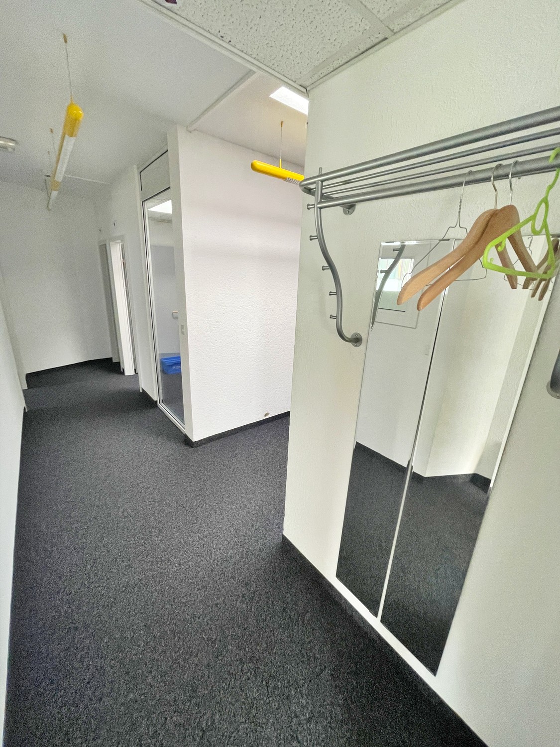 Les murs sont en crépis blanc et sols recouverts de moquette. Un canal de sol périphérique permet une grande souplesse pour les branchements électriques et téléphoniques. Chauffage au gaz par radiateurs.