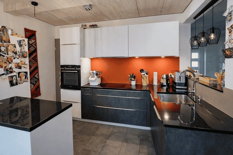 (four, lave-vaisselle, frigo/congélo, micro-ondes, machine à café, Moulinex Companion, nombreux rangements)