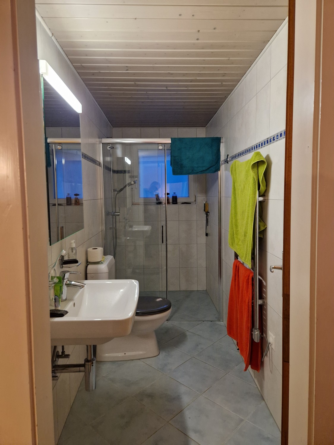 L’emplacement est idéal : Migros à 6 min à pieds, arrêt du LEB Sur Roche à 3 min ainsi que foret et Parcours Vita à 6 min.