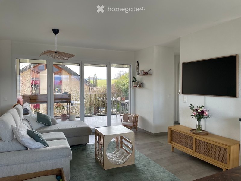 À remettre dès le 01.10.2026, bel appartement neuf de env. 95 m² situé au 1er étage dun joli petit immeuble à Bettens.