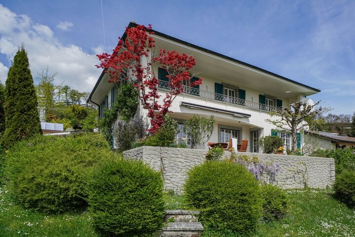 Diese charmante Villa vereint klassische Architektur mit zeitloser Eleganz und liegt eingebettet in eines der schönsten Weinanbaugebiete der Schweiz. Auf drei Etagen und insgesamt 272 m² Wohnfläche erwarten Sie grosszügige Räume, lichtdurchflutete Wohnbereiche und ein atemberaubender Panoramablick auf den See und die Alpen.Das Herzstück bildet der helle Wohnbereich mit Kamin, der eine behagliche Atmosphäre schafft. Das elegante Esszimmer mit direktem Zugang zur Terrasse lädt zu geselligen Momenten ein, während die grosse Küche mit viel Stauraum und angeschlossenem Weinkeller sowohl praktische als auch genussvolle Ansprüche erfüllt.Die gepflegten Nassbereiche umfassen ein Badezimmer mit Dusche, zwei separate Toiletten sowie eine zusätzliche Dusche in der Nähe der hauseigenen Sauna. Auf der obersten Etage rundet ein überdachter Balkon mit Panoramablick das einmalige Wohnerlebnis ab.Im Untergeschoss sorgen ein Yoga-Raum, ein Fitnessbereich und die Sauna für Entspannung und Vitalität. Für die Parkierung stehen zwei überdachte Plätze sowie drei Aussenstellplätze zur Verfügung, die im Kaufpreis enthalten sind.Eine Villa, die klassische Eleganz, modernen Komfort und eine unvergleichliche Lage harmonisch miteinander verbindetInteressiert? Weitere Informationen, Bilder und einen virtuellen Rundgang sowie Besichtigungsmöglichkeiten finden Sie unter: propertyowner.ch/de/immobilien/25-11655