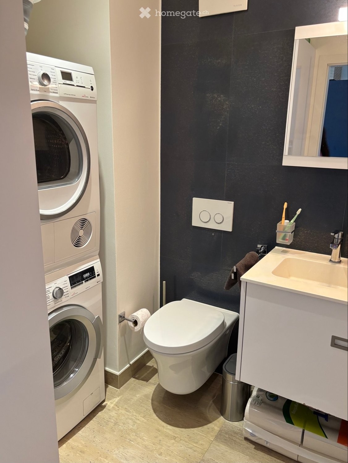 - WC visiteurs avec colonne de lavage (lave-linge et sèche-linge)