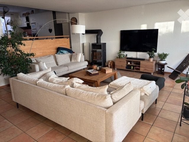 - Rez: hall d'entrée, WC visiteurs, cuisine habitable agencée, grand salon, véranda, poële