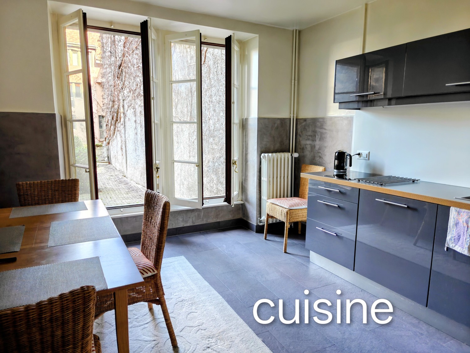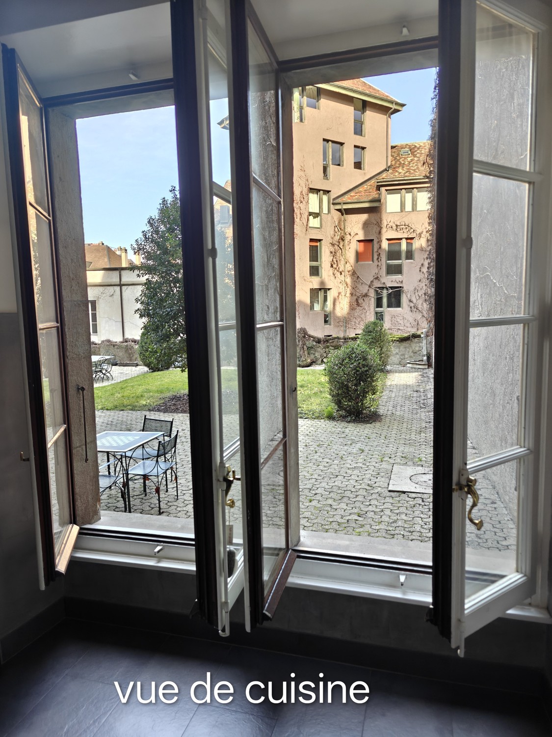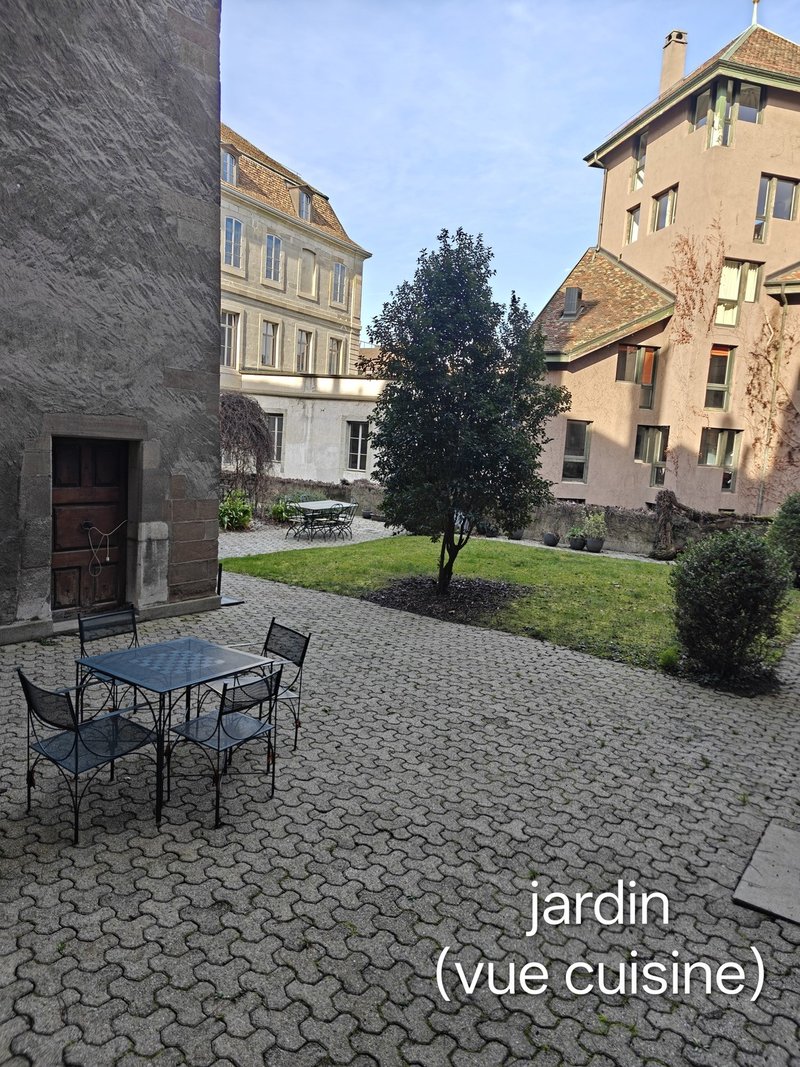 Exclusive & stunning garden apartment in the Vieille Ville. This two piece apartment benefits from direct access to a well-tended garden with two sets of seating. While all building residents <8 apartments can access, this inner courtyard apartment has the only direct access from the kitchen.