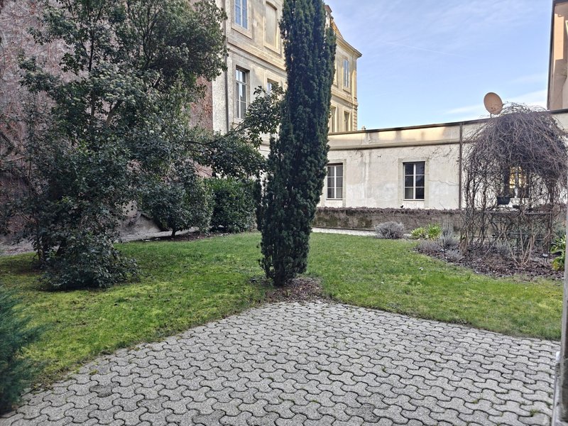 The 53sm immaculate apartment benefits from a gracious entryway with its own dressing room, a spacious principal room with built-in bookcases, crown moulding and 3m ceilings and windows looking on the garden. A short four steps lead to another generous cabinet, the up-to-date shower room and its utility cabinet, and a large equipped kitchen with built-in cupboarding and two sets of double doors leading to steps that reach into a private patio.