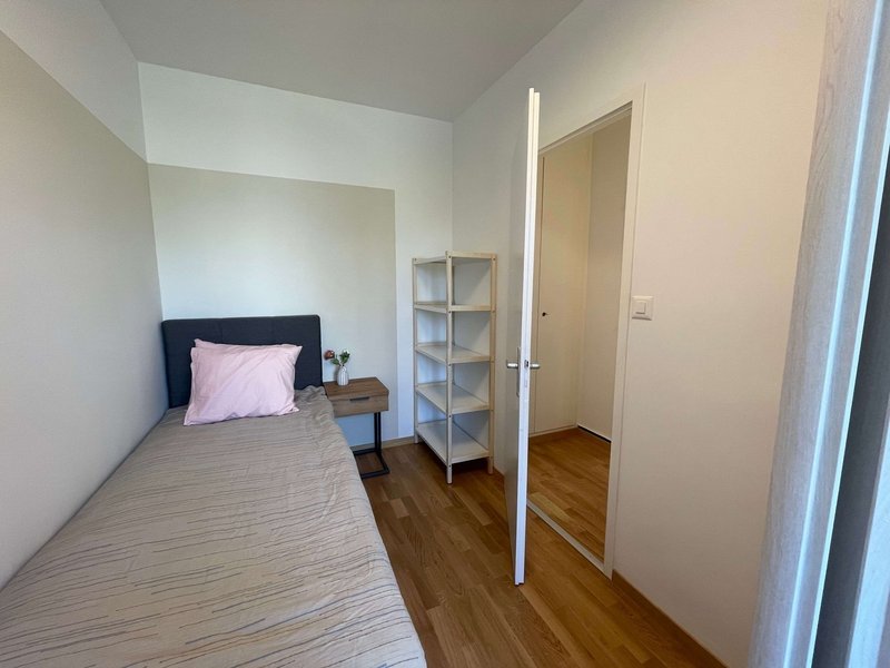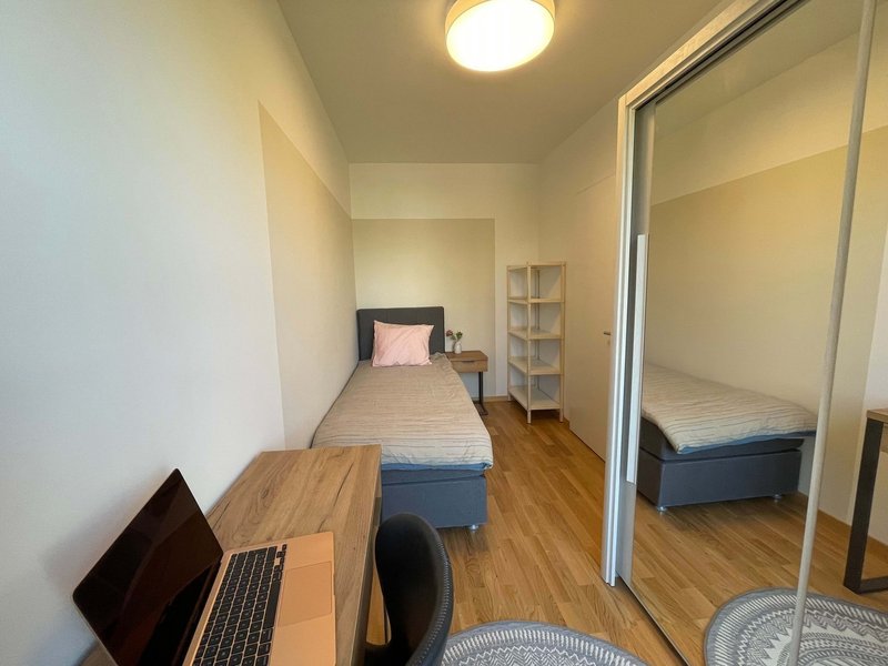 This shared flat is close to all amenities and free from noise pollution. It is tastefully furnished, on the lower floor of the building. The kitchen and the bathroom are shared with your future roommates.