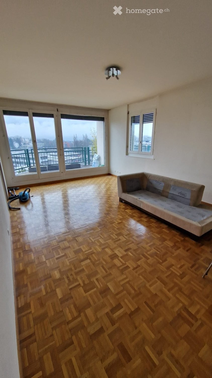 Appartement de 5 pièces au 6e étage à Thônex avec 3 chambres, un grand salon, une cuisine semi équipée (lave-vaisselle et hotte) une salle-de-bain avec WC, 1 WC, terrasse, garage et cave. Loyer mensuel CHF 2'563.00 charges et garage compris.