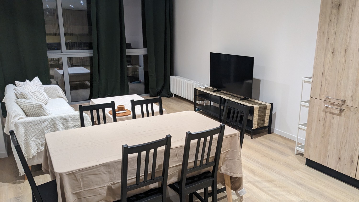 Tout est neuf. L’appartement est tout équipé, cuisine équipée, lave-vaisselle, lave-linge, wifi, électricité, eau et chauffage inclus dans les charges (en forfait à régulariser trimestriellement).