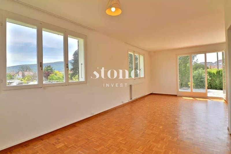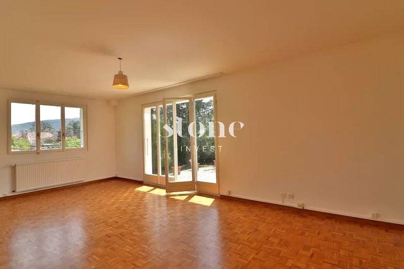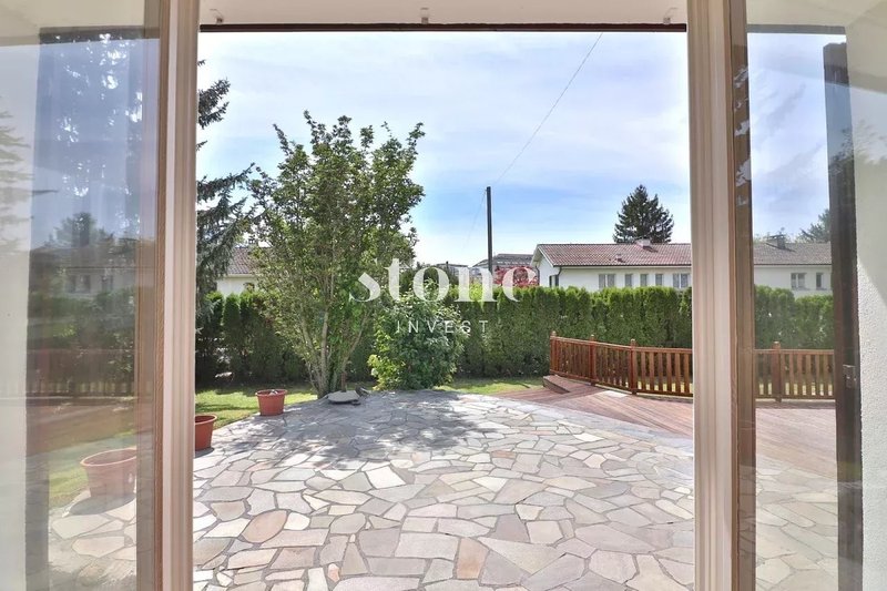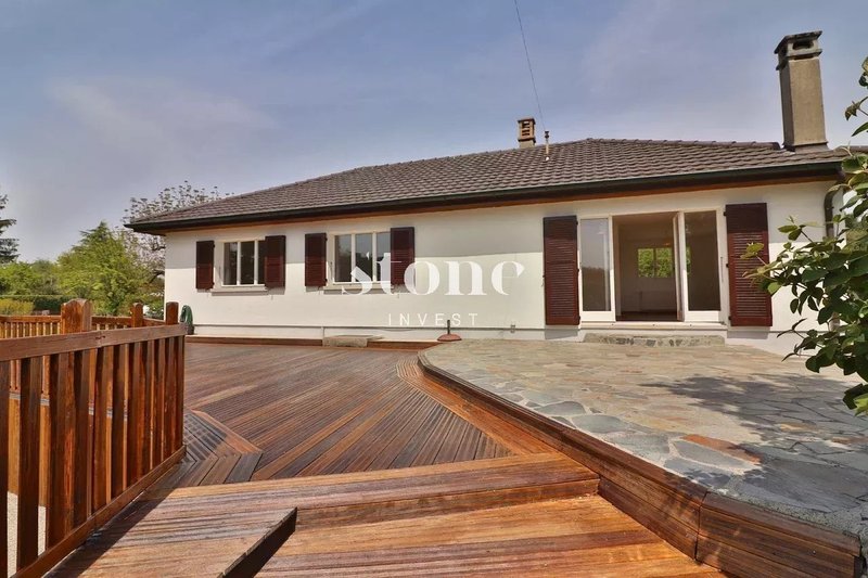 Cette villa de style classique de plain-pied est idéalement située à Thônex, au bout d'un chemin sans issu, au calme, dans un quartier résidentiel. Elle bénéficie d'un immense et magnifique jardin avec une vue imprenable sur les Alpes.
