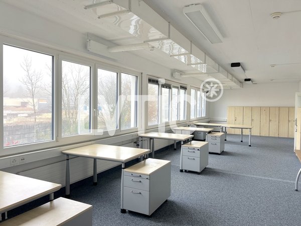 Atelier, laboratoire, bureaux de 1'300 m2 à louer proche de Nyon 1- Rez : 600 m2 Laboratoires, ateliers, locaux, bureaux Accès de plain pied, plaque élévatrice Hauteur : 3,60 m