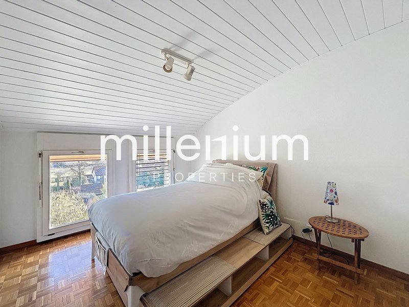Situé au premier et dernier étage, ce bien séduit par sa luminosité, ses volumes bien répartis et surtout par sa vue imprenable sur les Alpes, offrant un panorama dégagé et spectaculaire.