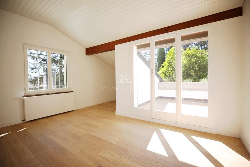Cette villa est idéalement située au coeur de Coppet proche des écoles et des commodités. La maison bénéficie d'une large parcelle de 2'229 m2 et vient d'être entièrement rénovée avec des matériaux de qualité (parquet en chêne, pierre de jérusalem dans les couloirs et la cuisine, béton ciré dans les salles de bains, parquet dans toutes les chambres.