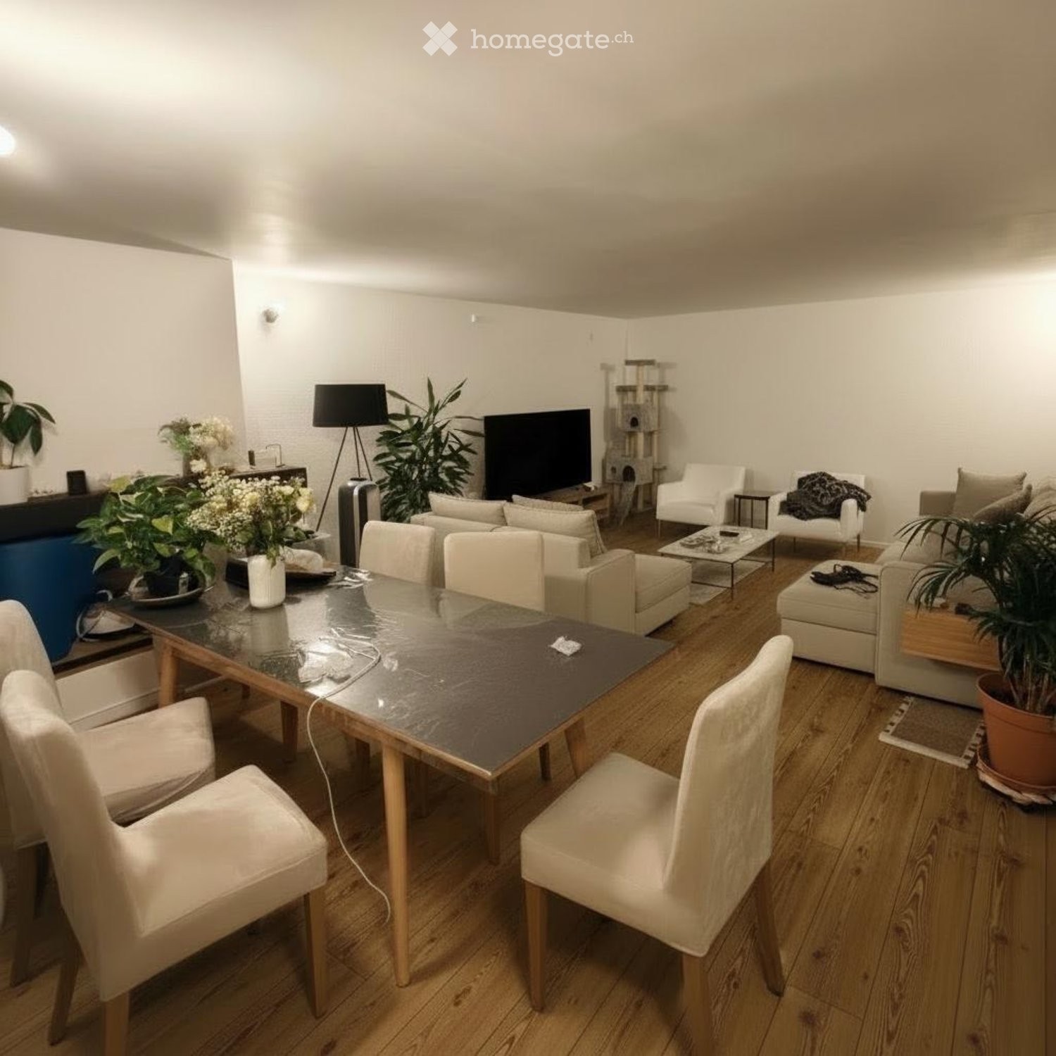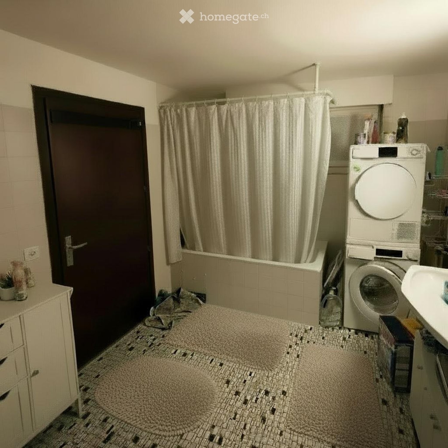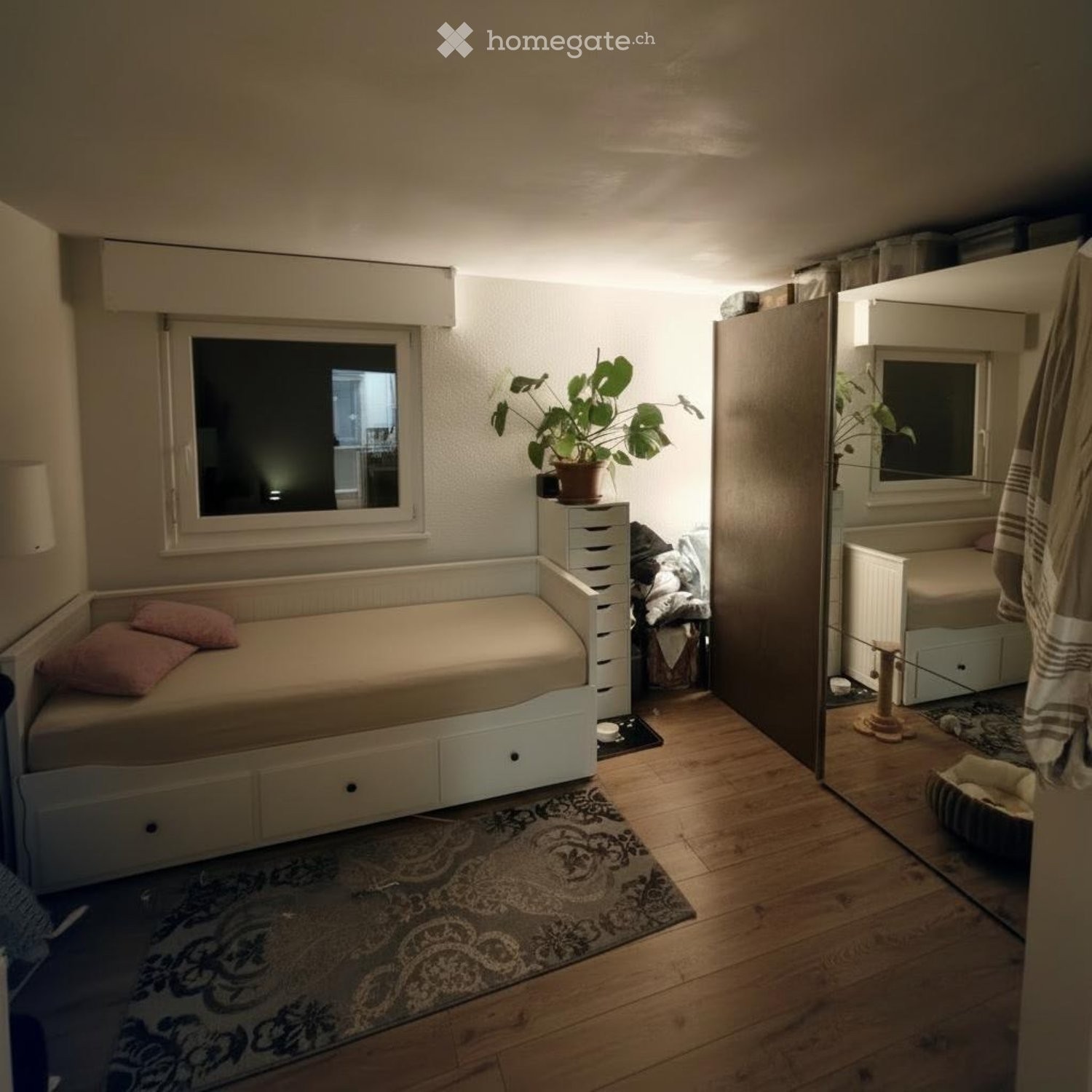 - 2 chambres à coucher - 1 salle de douche avec raccordement pour colonne lave-linge/sèche-linge - 1 grand salon - 1 cuisine équipée - garage