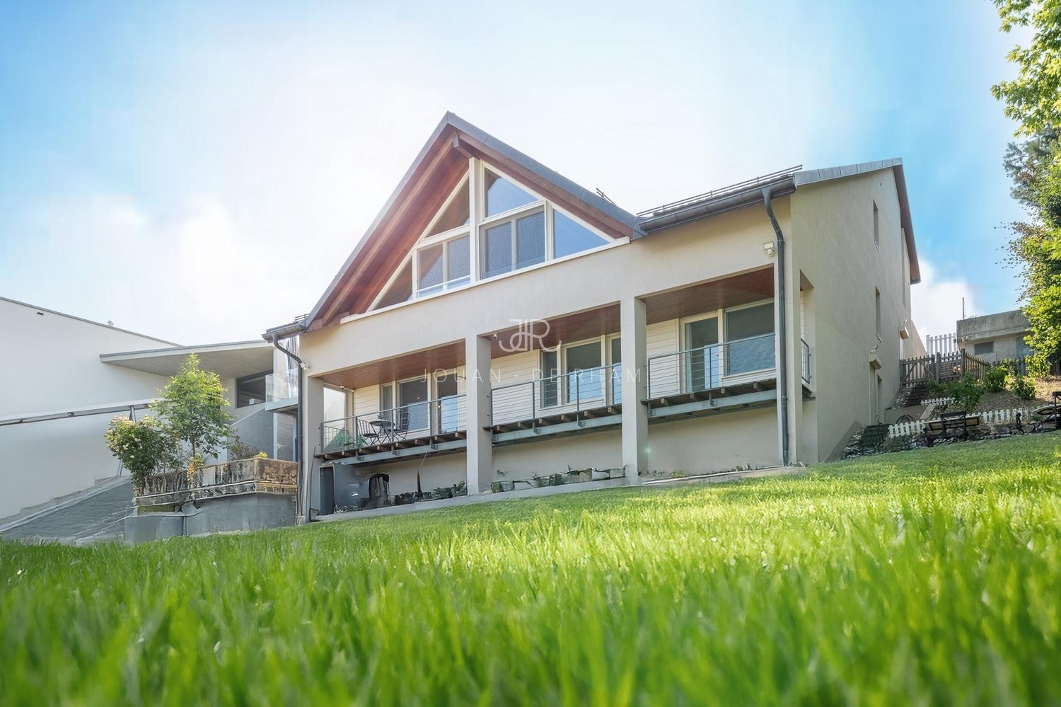 La maison est distribuée sur 3 niveaux, qui sont desservis par un ascenseur permettant d'avoir des vues dans toutes les pièces de la maison.