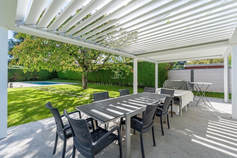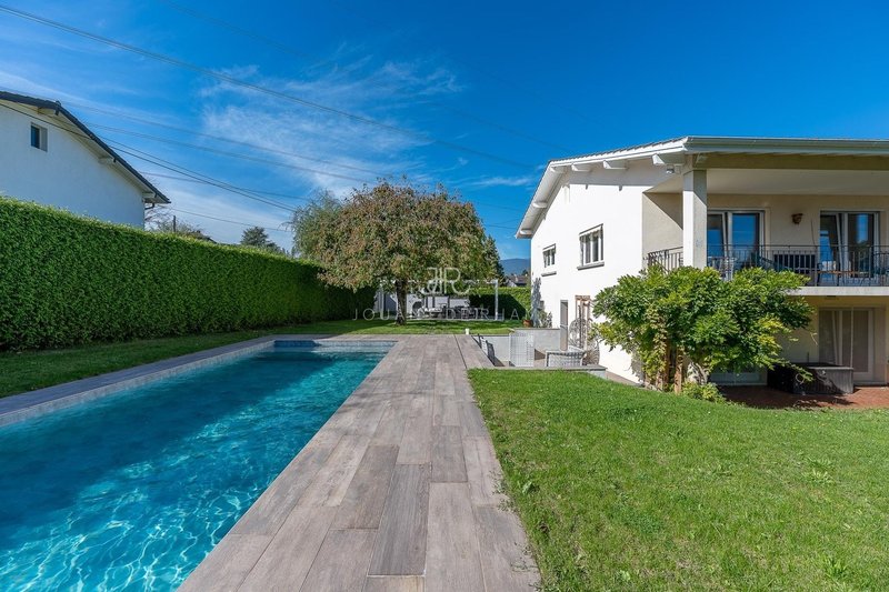 Dans un cadre paisible et verdoyant, cette maison individuelle de 260 m² habitables séduit par ses beaux volumes et son grand terrain de 1'309 m² avec piscine extérieure.