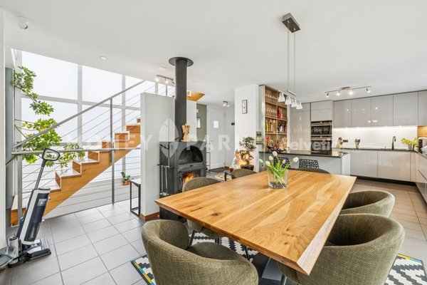 À l'étage, vous trouverez 3 grandes chambres à coucher dont une parentale avec dressing. Une salle de bain avec baignoire se trouve également à cet étage. À cela s'ajoute au sous-sol le local technique / buanderie et une énorme pièce de loisirs avec bar, salon / cinéma et espace de jeux.