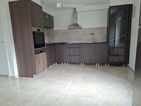 Appartement de 4,5 pièces, avec 1 salle de bain, 1 WC séparé, les prises pour mettre la colonne de lavage, 3 grandes chambre, 1 très grand hall, cuisine agencée avec salon l'appartement a été totalement refait à neuf, une grande cave, 2 places de parc