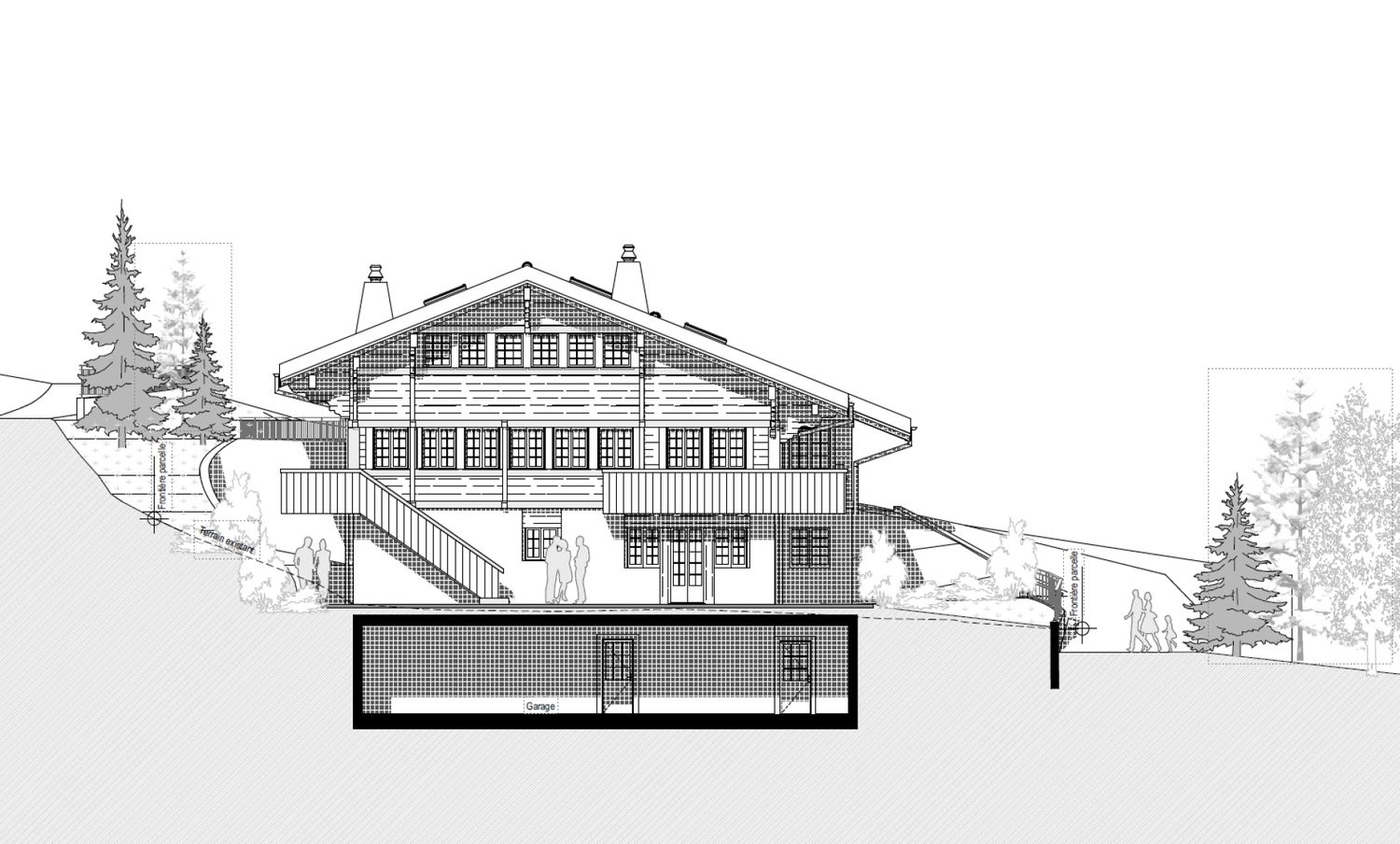 The new building project provides 200m² of living space with over 500m² of adjoining rooms with a wellness oasis and a parking garage for five vehicles.
