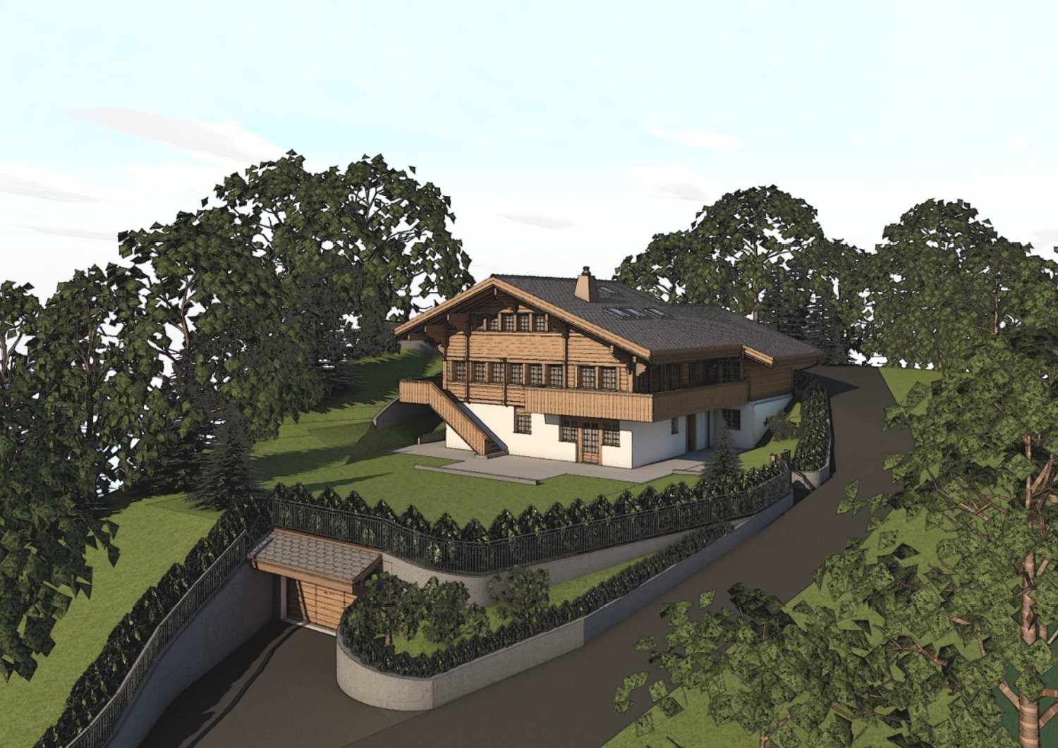 Das Neubauprojekt umfasst 200m² Wohnfläche mit über 500m² am Nebenräumlichkeiten mit einer Wellness-Oase und einer Einstellhalle für fünf Fahrzeuge.