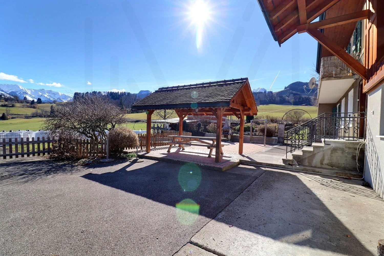 La propriété bénéficie d'une vue imprenable et dégagée sur le Moléson, le Château de Gruyères et les Préalpes fribourgeoises.