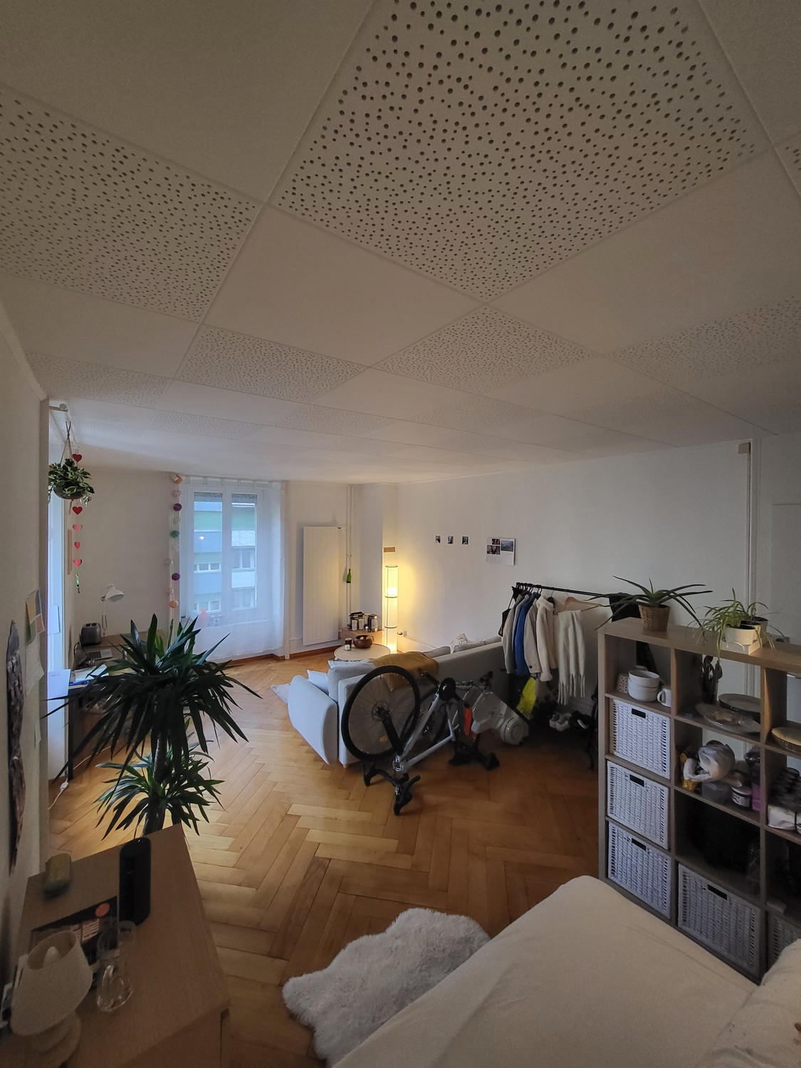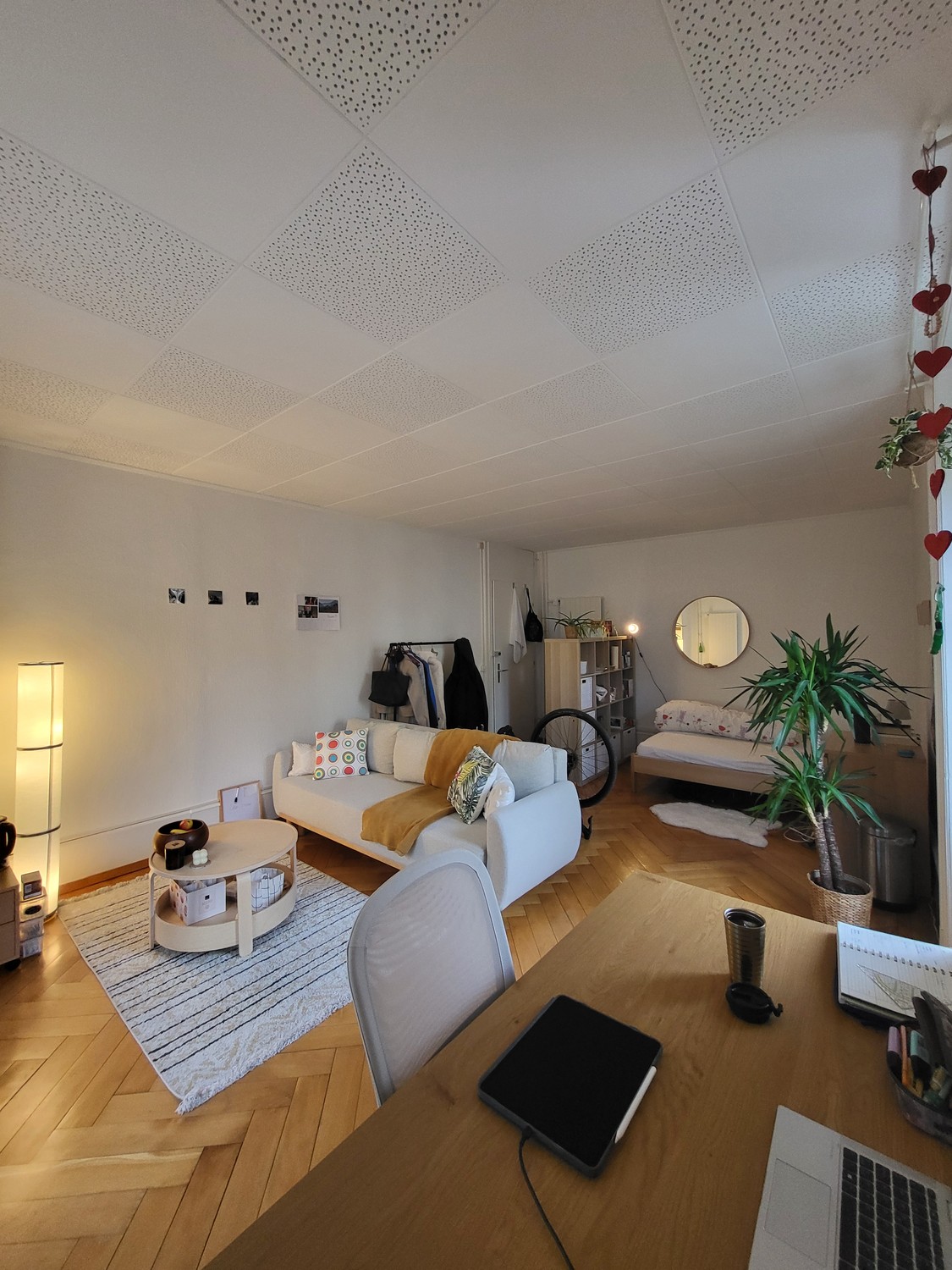 Tu cherches une chambre lumineuse, grande (24m²) et littéralement à 2 minutes de la gare de Fribourg? Dès le 1er mars 2026, elle se libère, partiellement meublée avec un loyer de seulement 432.-/mois (plus environ 30.- de charges tous les trois mois), et tu partageras l'appartement avec trois autres personnes.