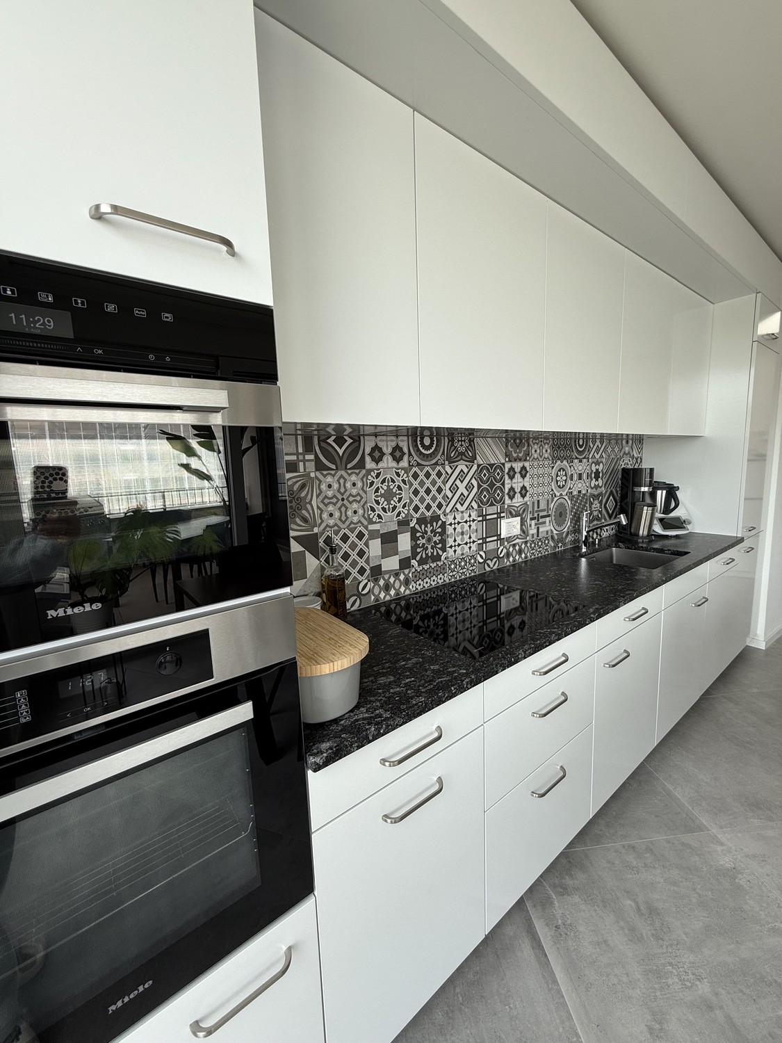 Cuisine ouverte et moderne avec beaucoup d'espace de rangement