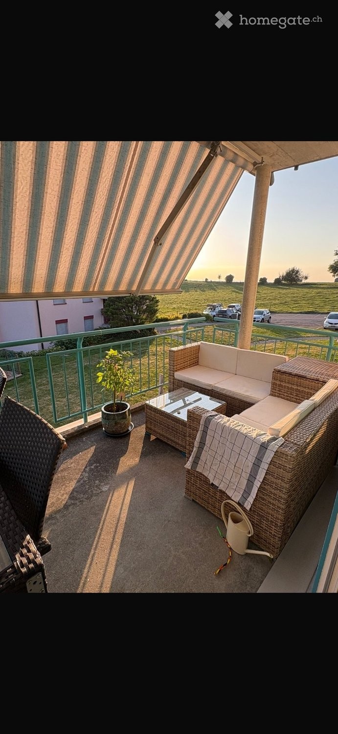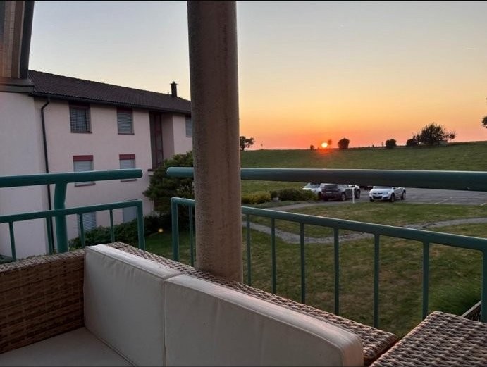 Ein Balkon im ersten Stock mit wunderschöner Aussicht auf den Sonnenuntergang lädt zum Verweilen ein. Zur Wohnung gehören ausserdem ein geräumiges Kellerabteil. Haustiere sind erlaubt.