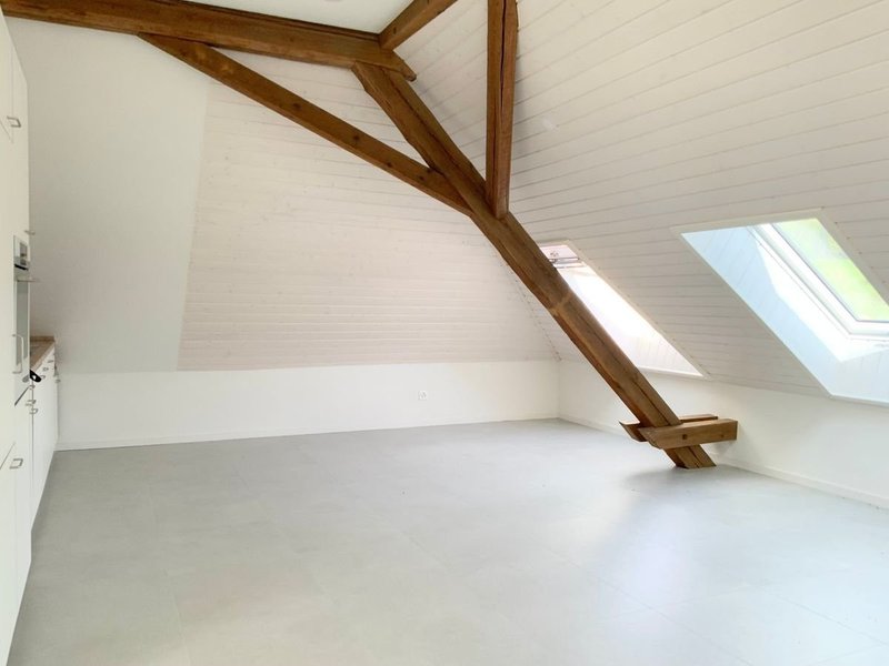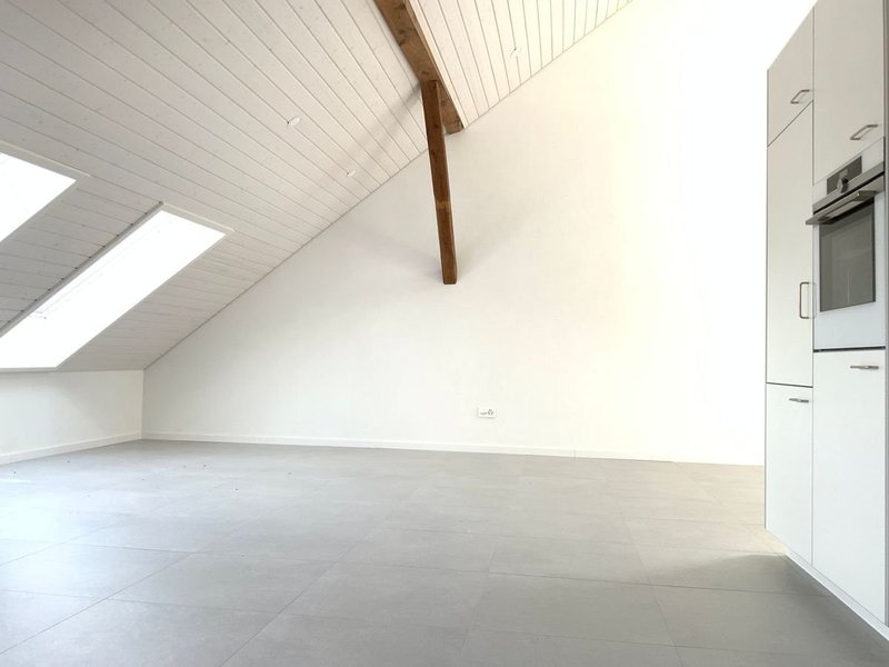 2,5 pièces, composé d'une grande pièce à vivre (salon - salle-à-manger - et cuisine ouverte - 34m2), d'une chambre de 14m2, d'une bibliothèque de 6m2 et d'une salle de bain (baignoire / WC).