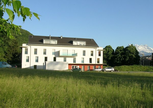 Appartement pour une à deux personnes, intérieur soigné et lumineux, belle vue, grande terrasse, situation calme, à 5 min. des commerces et de l'entrée de l'autoroute, bien desservi par les transports publics, pas de barrières architecturales, ascenseur.