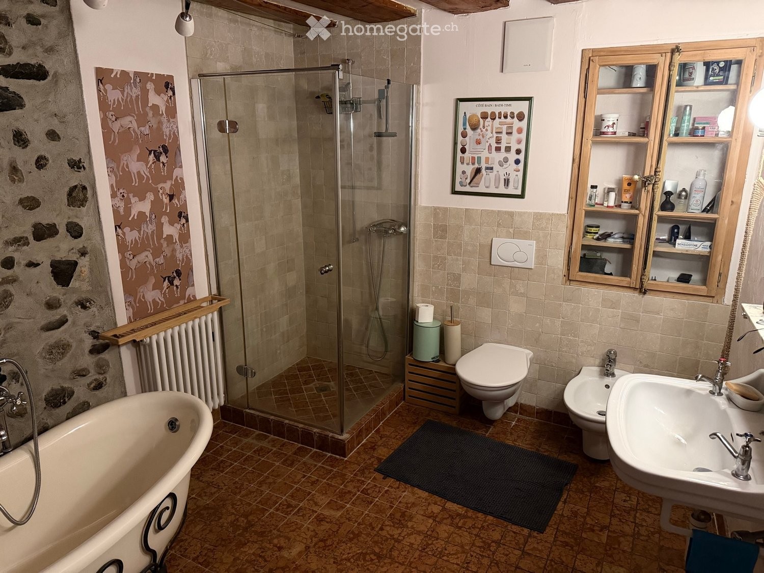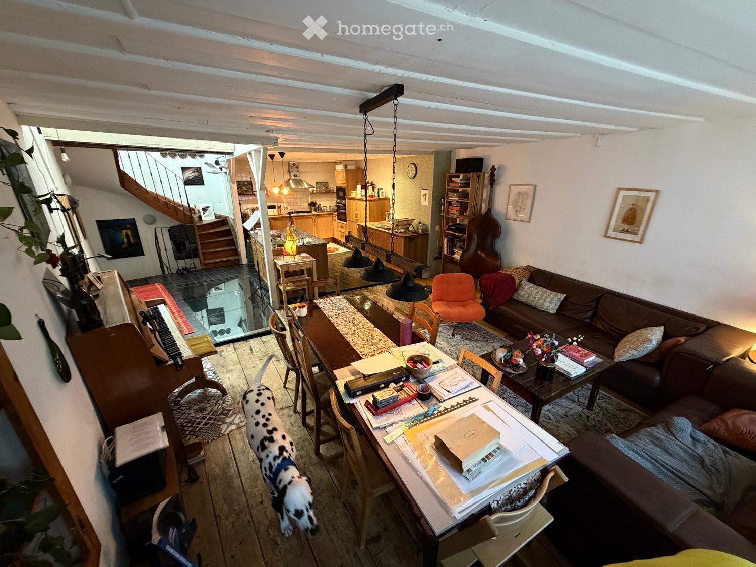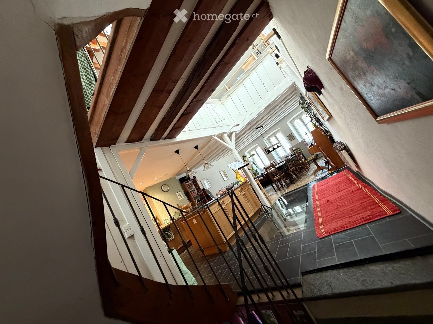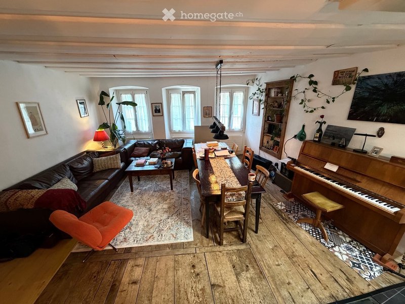 Immense et magnifique appartement de 5 pièces de 120 m² au moins sur 4 niveaux avec entrée et studio/local avec vitrine indépendant, l'entrée du bâtiment étant située au rez-de-chaussée de la rue piétonne à Aigle. Avec grande cave.