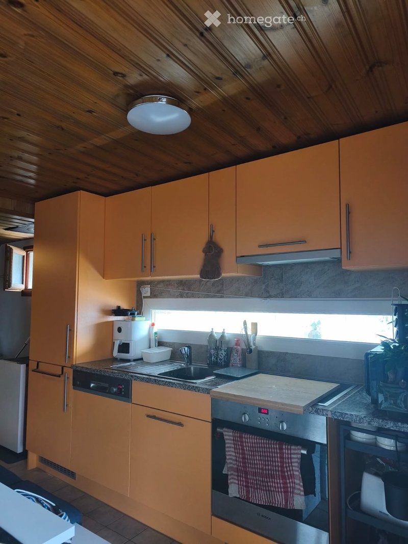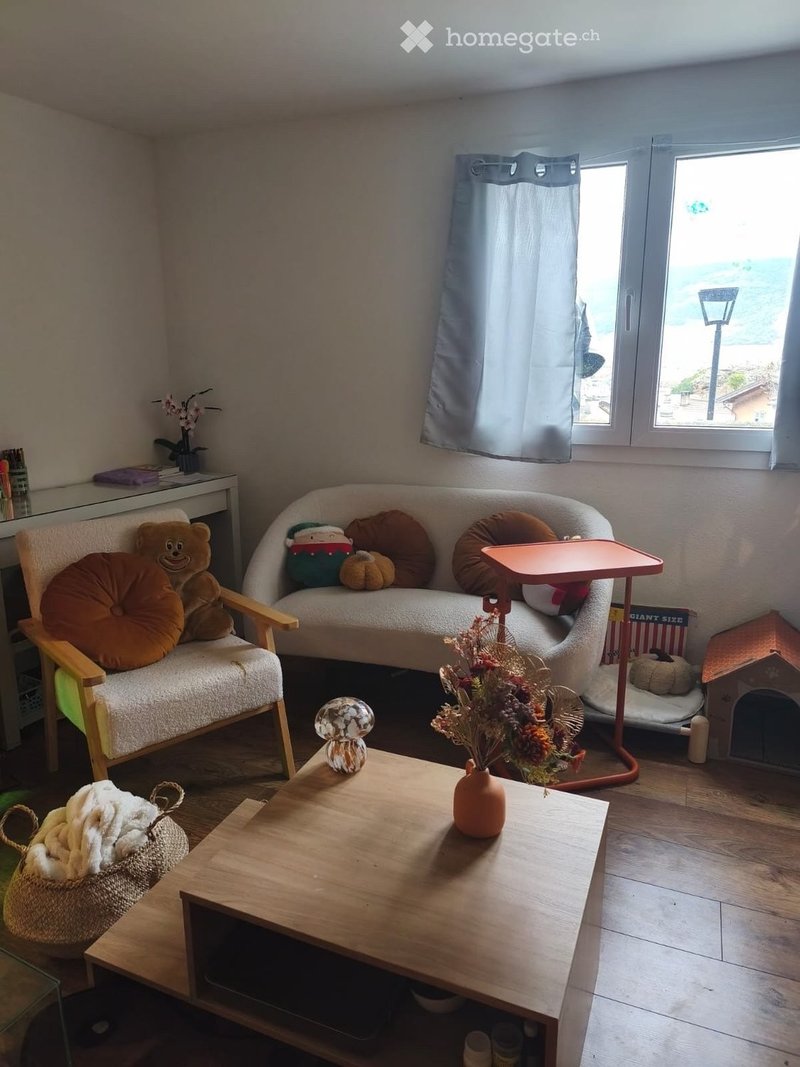 appartement de 3,5 pièces à louer dès le 1er mai dans les hauts de Charrat, loin du bruit et avec une superbe vue. Cuisine ouverte sur une petite pièce à vivre avec poêle. 2 chambres à aménager à son gré. Une salle de douche avec lave/sèche-linge. Terrasse extérieure et une place de parc extérieure.