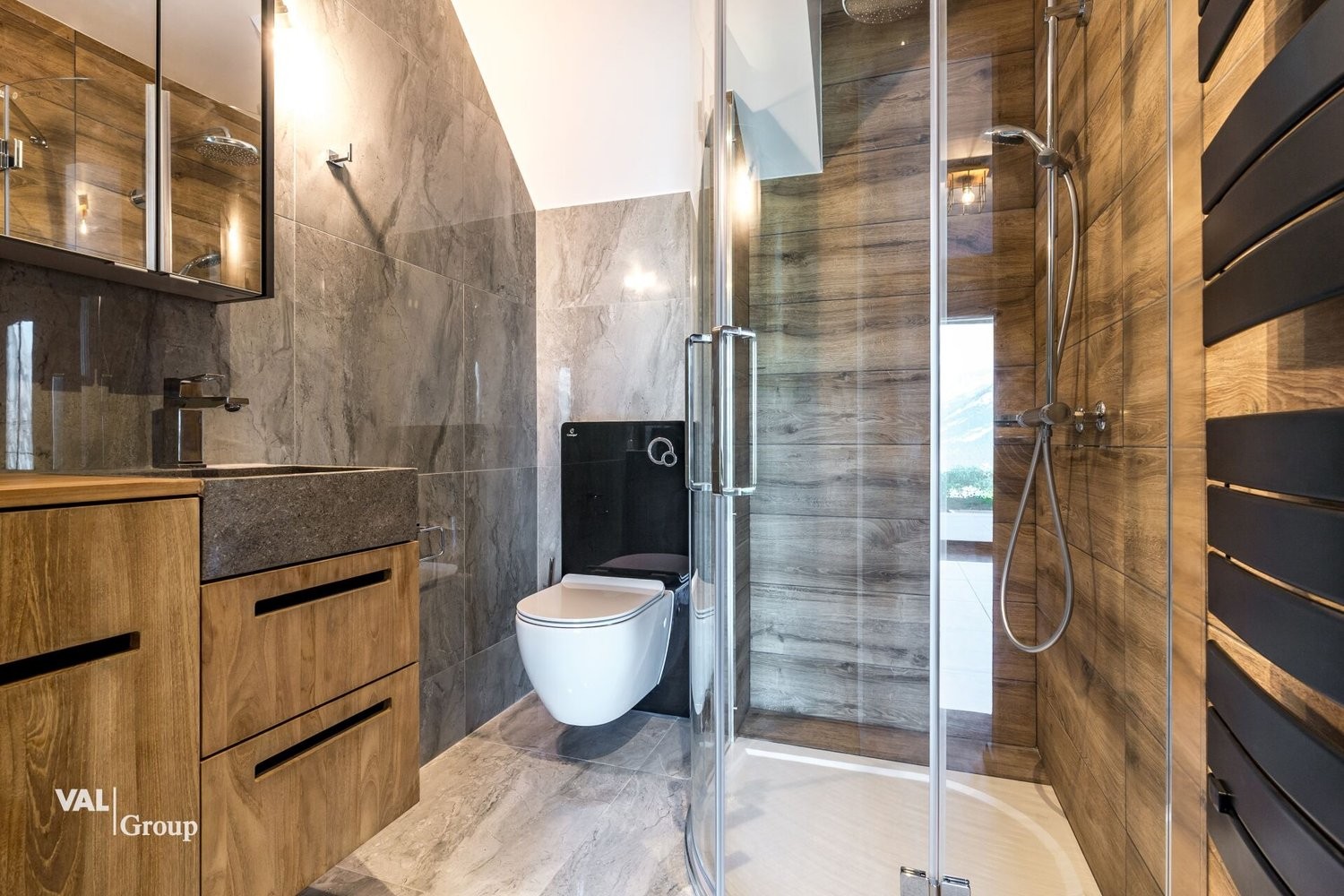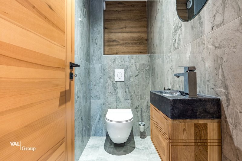 Les parties communes de l'immeuble offrent également des prestations appréciables : une armoire à skis et un carnotzet avec armoire à vin privative.