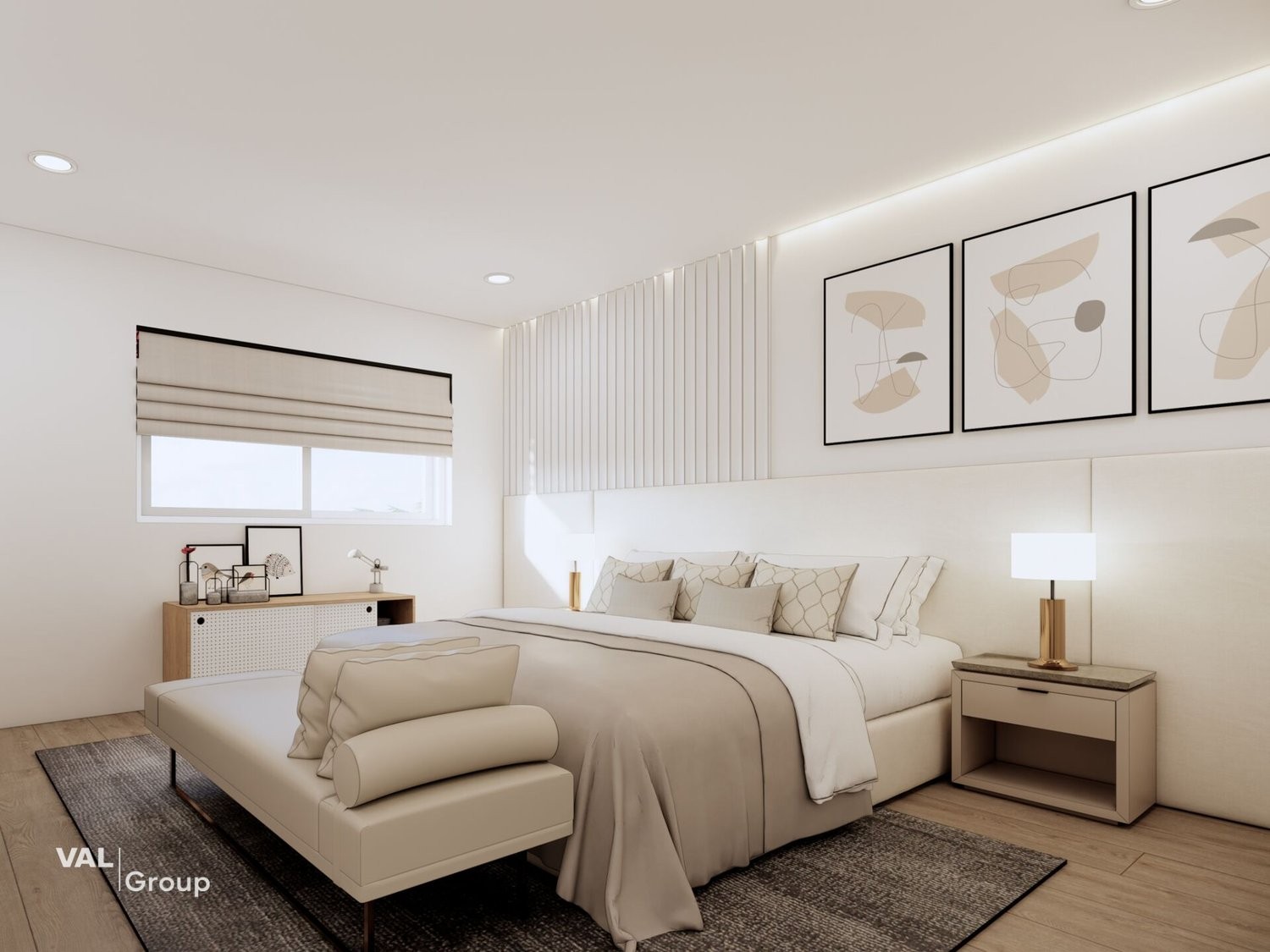 La partie nuit offre trois chambres bien proportionnées, pensées pour préserver le calme et l'intimité de chacun. Les sanitaires, réalisés avec soin, conjuguent fonctionnalité et qualité des finitions. L'agencement global privilégie une circulation fluide et un confort optimal au quotidien, sans perte d'espace.