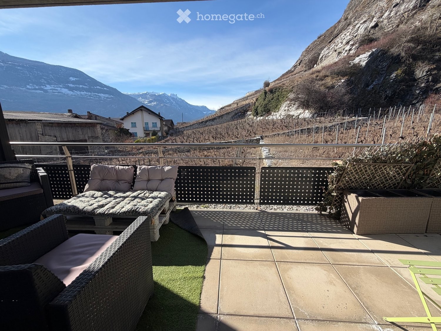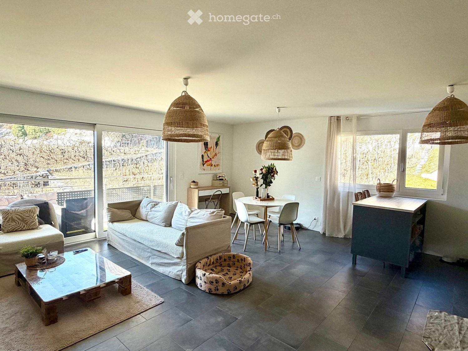 Grand séjour ouvert offrant une vue magnifique et dégagée sur les vignes et les montagnes