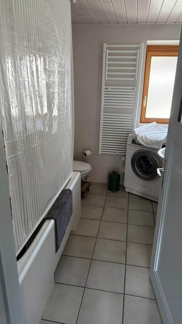- 1 salle de bain avec baignoire et raccordement pour la machine à laver