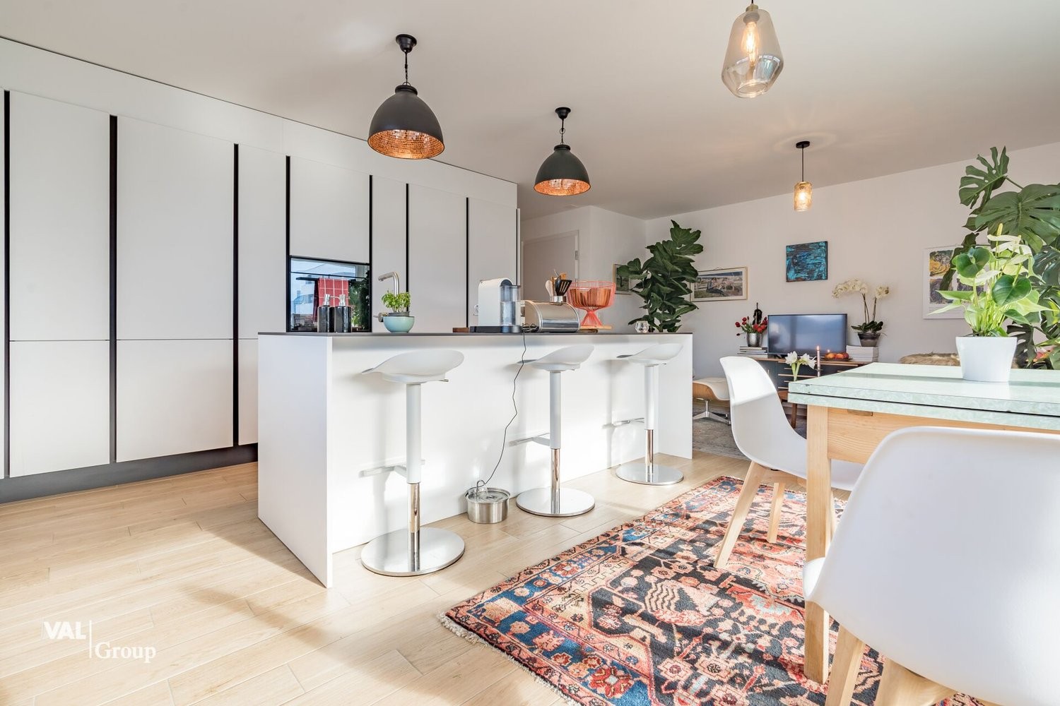Cet appartement au style contemporain et épuré vous séduira par ses espaces bien distribués et sa luminosité. La cuisine, équipée de nombreux rangements, est prolongée par un îlot central pratique, idéal pour recevoir. Le séjour attenant s'ouvre sur une grande terrasse, parfaite pour profiter des beaux jours.
