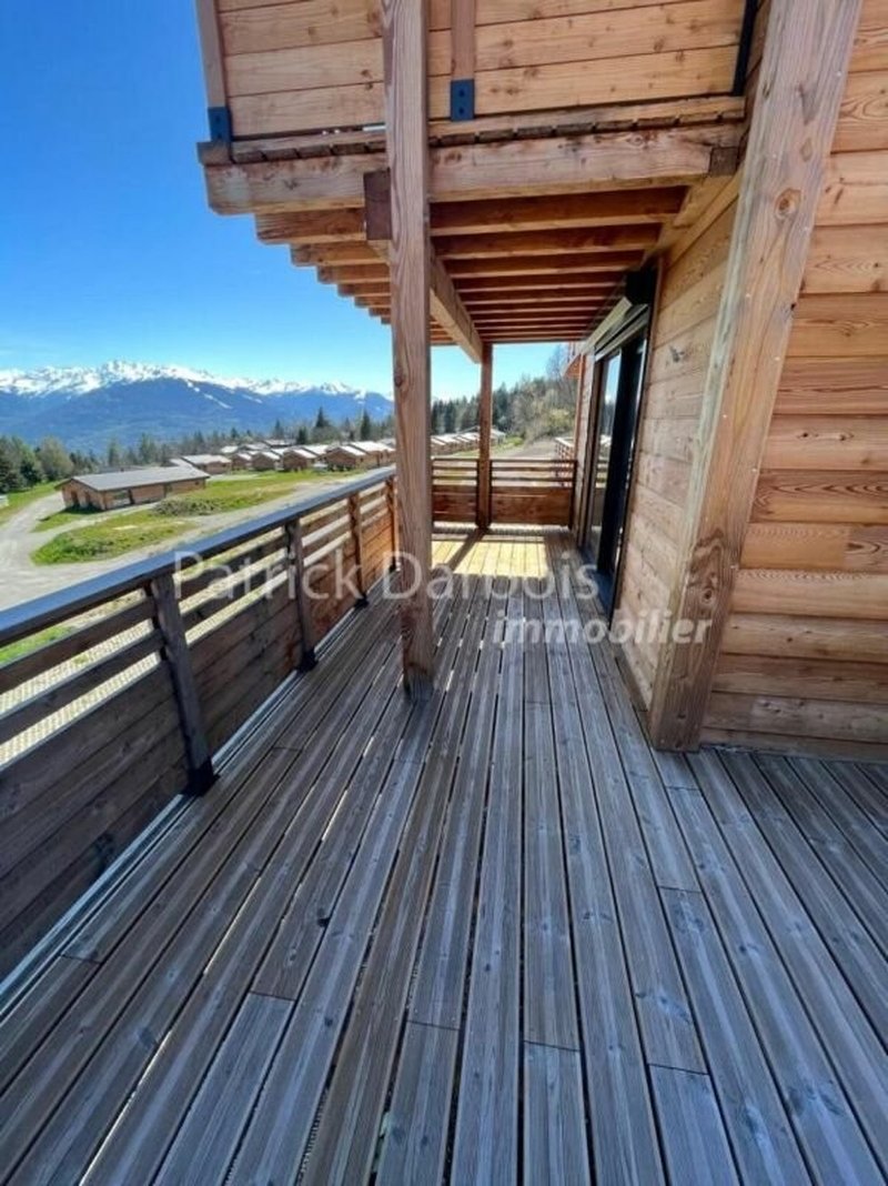 Terrasse couverte de 30 m2 exposée plein Sud et vue dégagée sur les Alpes, porte-skis
