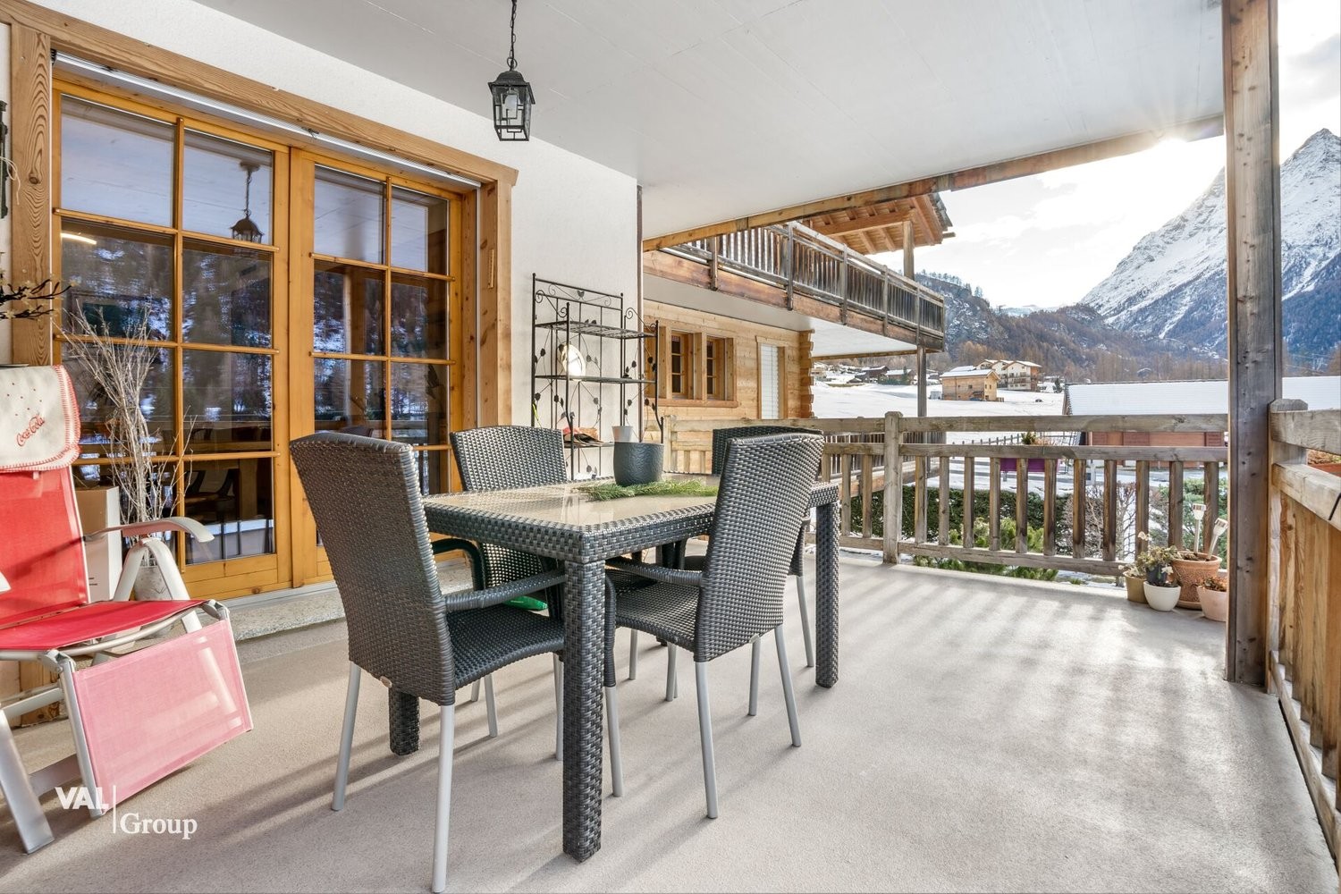Dès l'entrée, les matériaux nobles et l'ambiance chaleureuse du bois créent une atmosphère accueillante. Les volumes généreux permettent une circulation fluide et agréable dans chaque espace. Le séjour lumineux, ouvert sur l'extérieur grâce à de larges portes-fenêtres, donne accès à un balcon idéalement orienté, parfait pour profiter du soleil, partager un repas en plein air ou simplement contempler les montagnes enneigées.