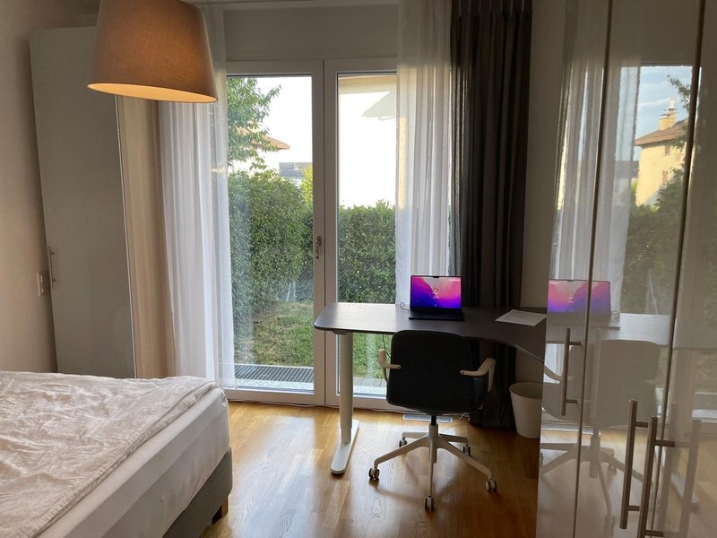 I am transferring my lease for a high-end furnished room with a private bathroom in a 3-person shared apartment, located at the entrance of St-Sulpice in a very quiet residential area, only a 5-minute walk from EPFL and the lake.